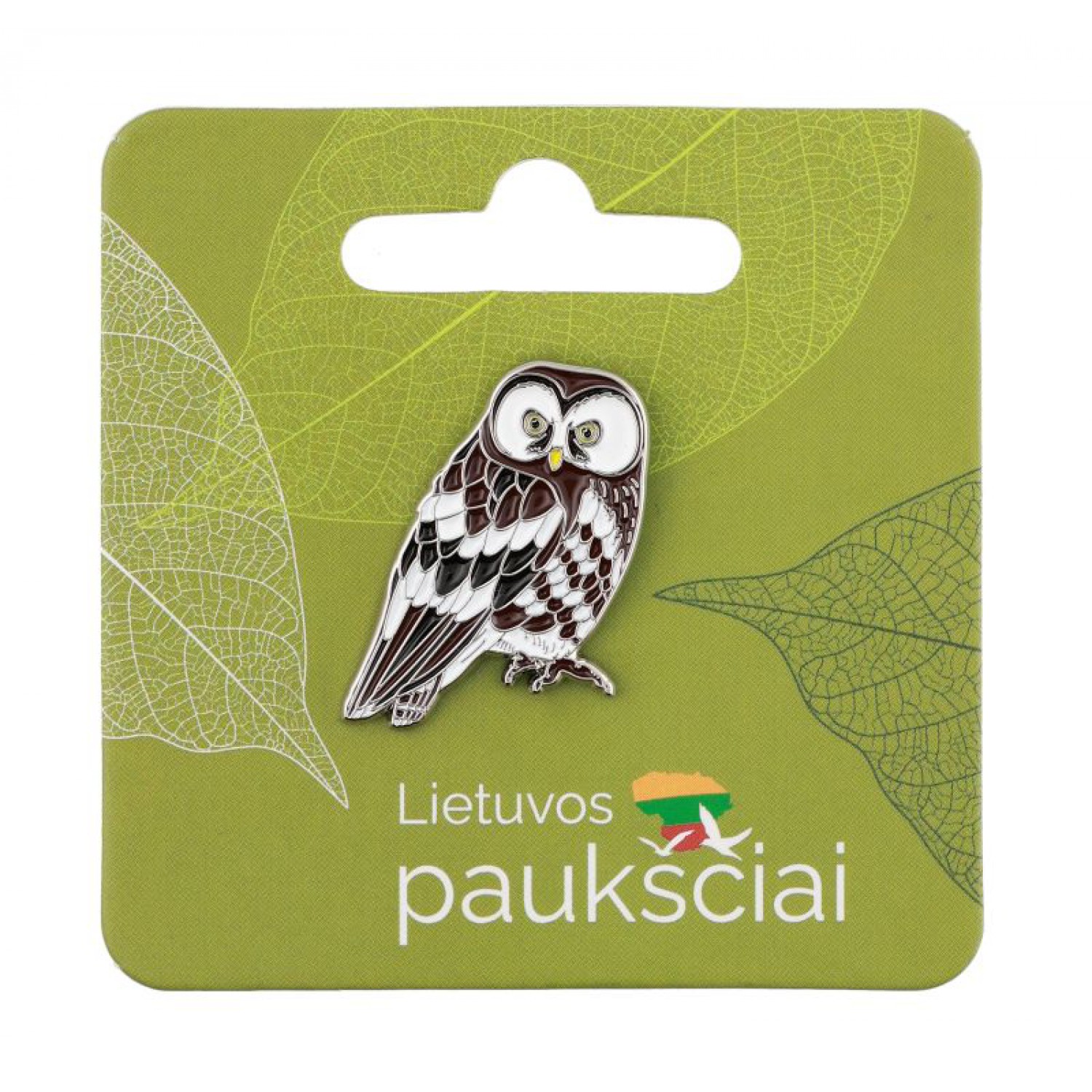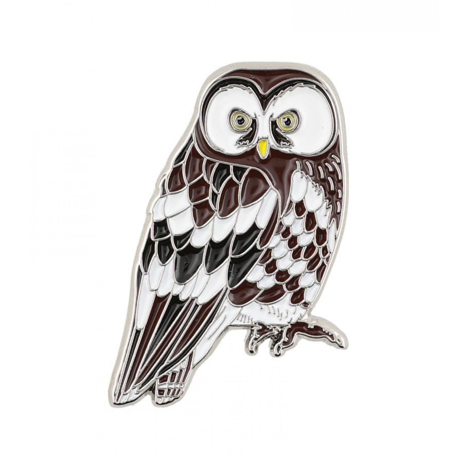 Enamel pin of the Boreal Owl (Aegolius funereus).
