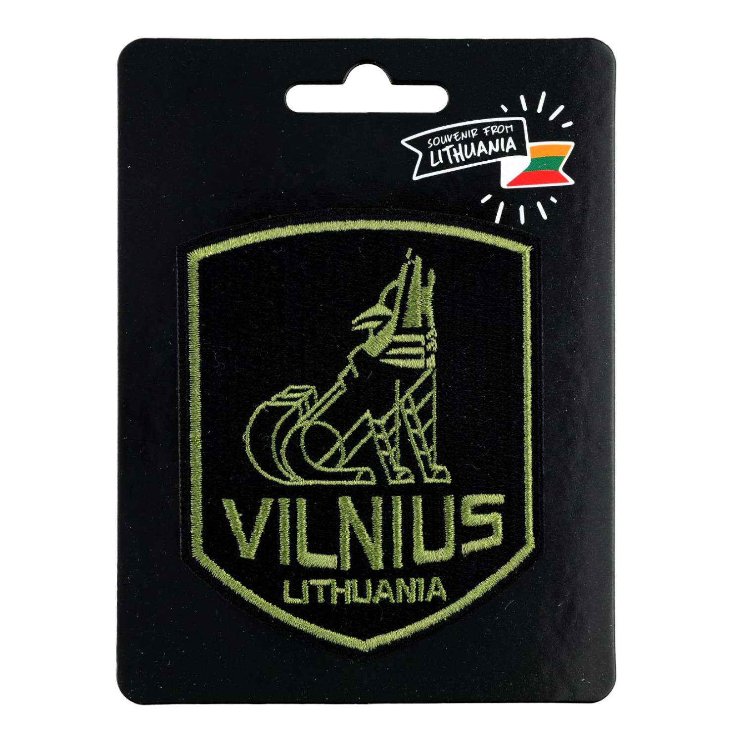 A stylish fabric patch featuring the text Vilnius, Lithuania, and the legendary Iron Wolf, a key symbol from the city’s founding legend and its coat of arms. Made from high-quality material, this patch is easy to sew or iron on. Perfect for jackets, backpacks, caps, or collections. An authentic and meaningful souvenir from Lithuania’s capital.