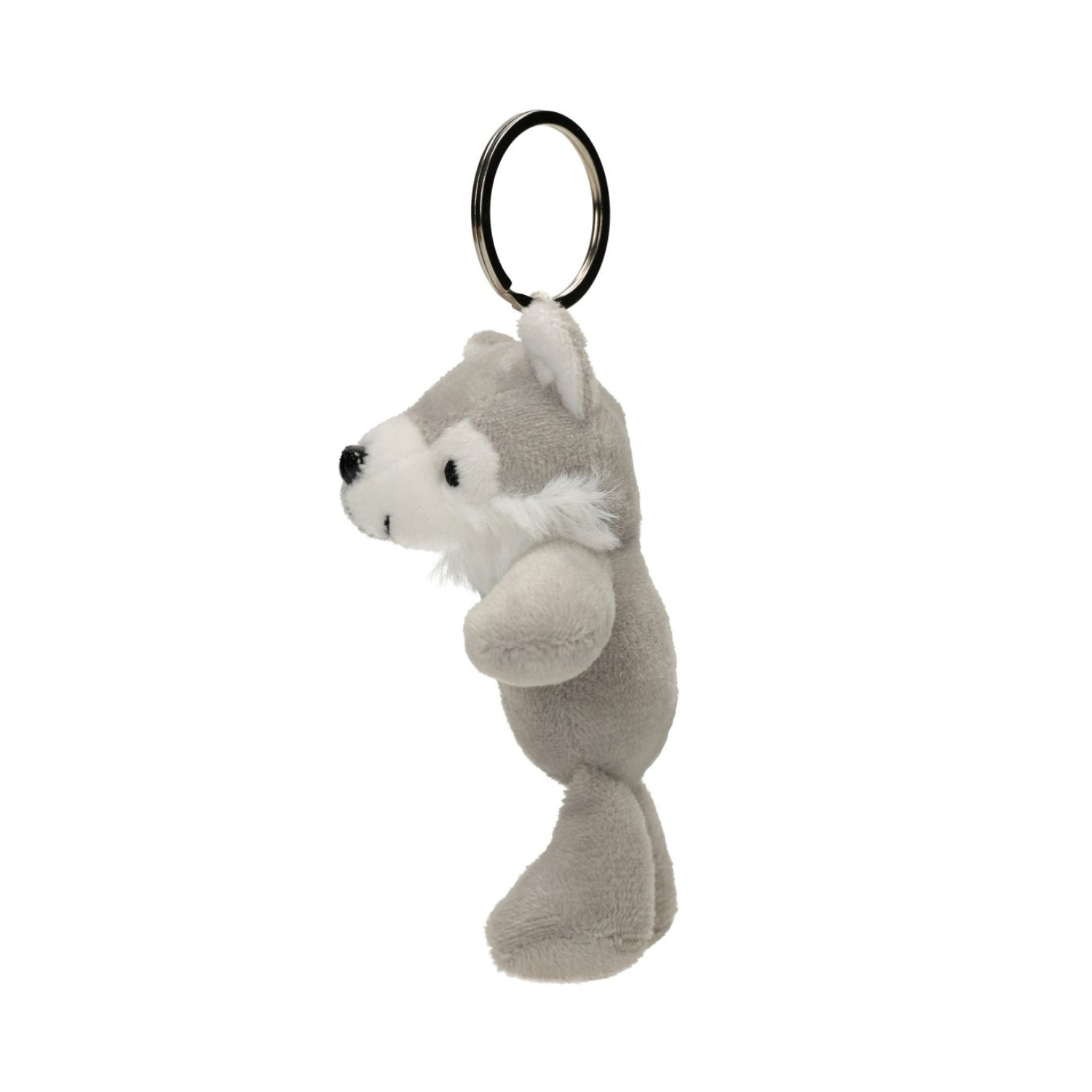 Soft plush wolf keychain featuring an embroidered heart-shaped Lithuanian flag. A cute and symbolic souvenir perfect for backpacks or keys.
