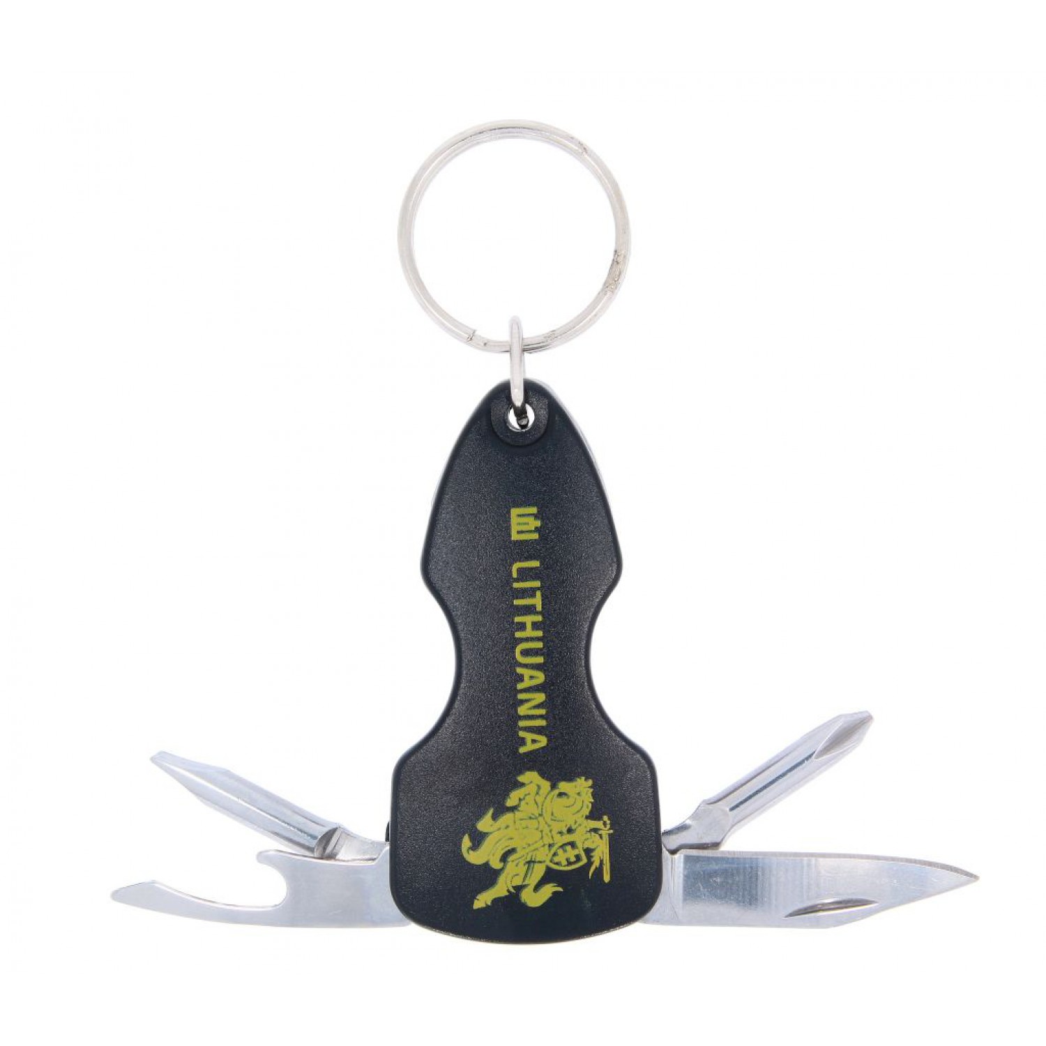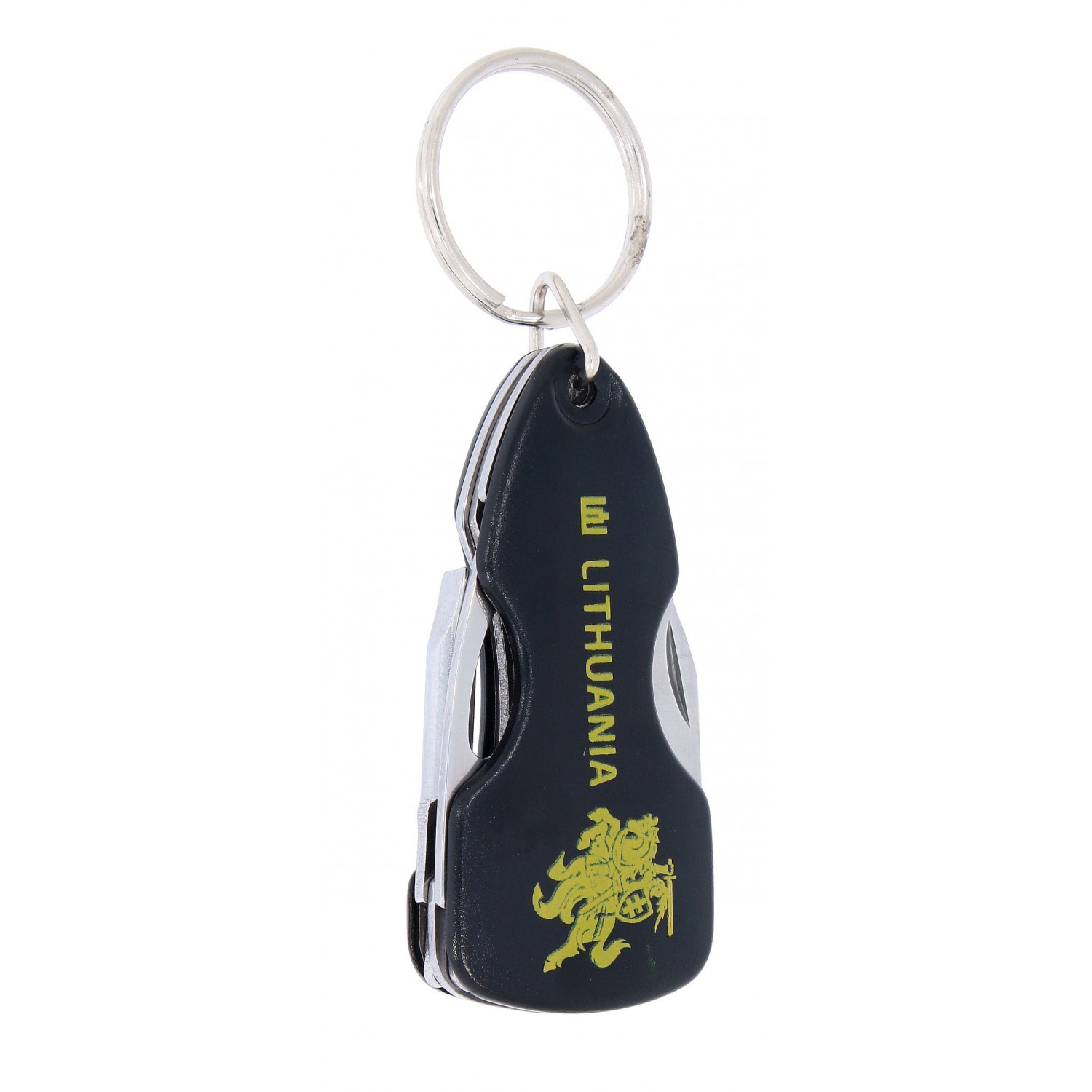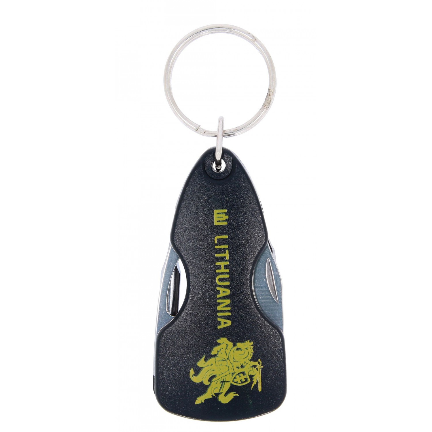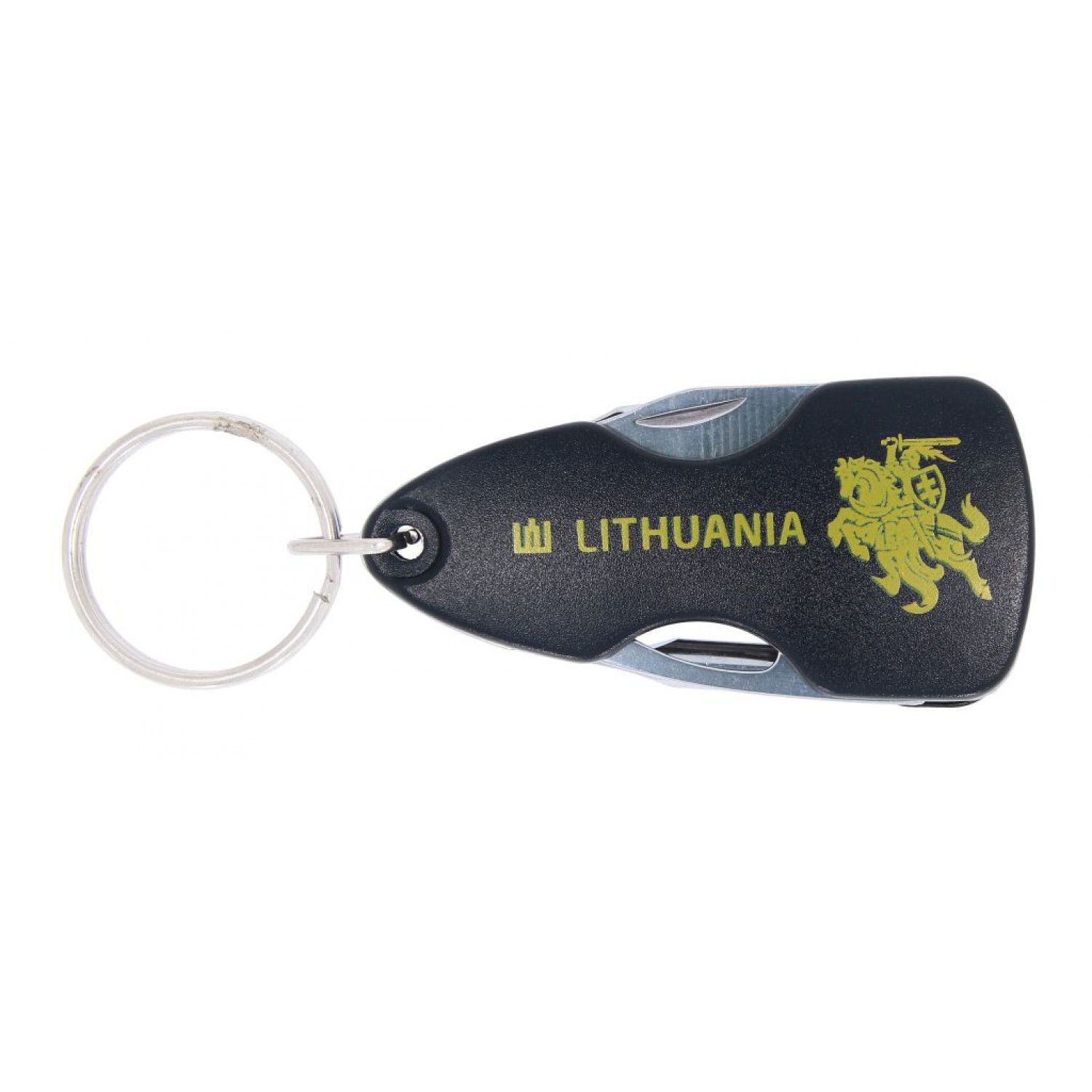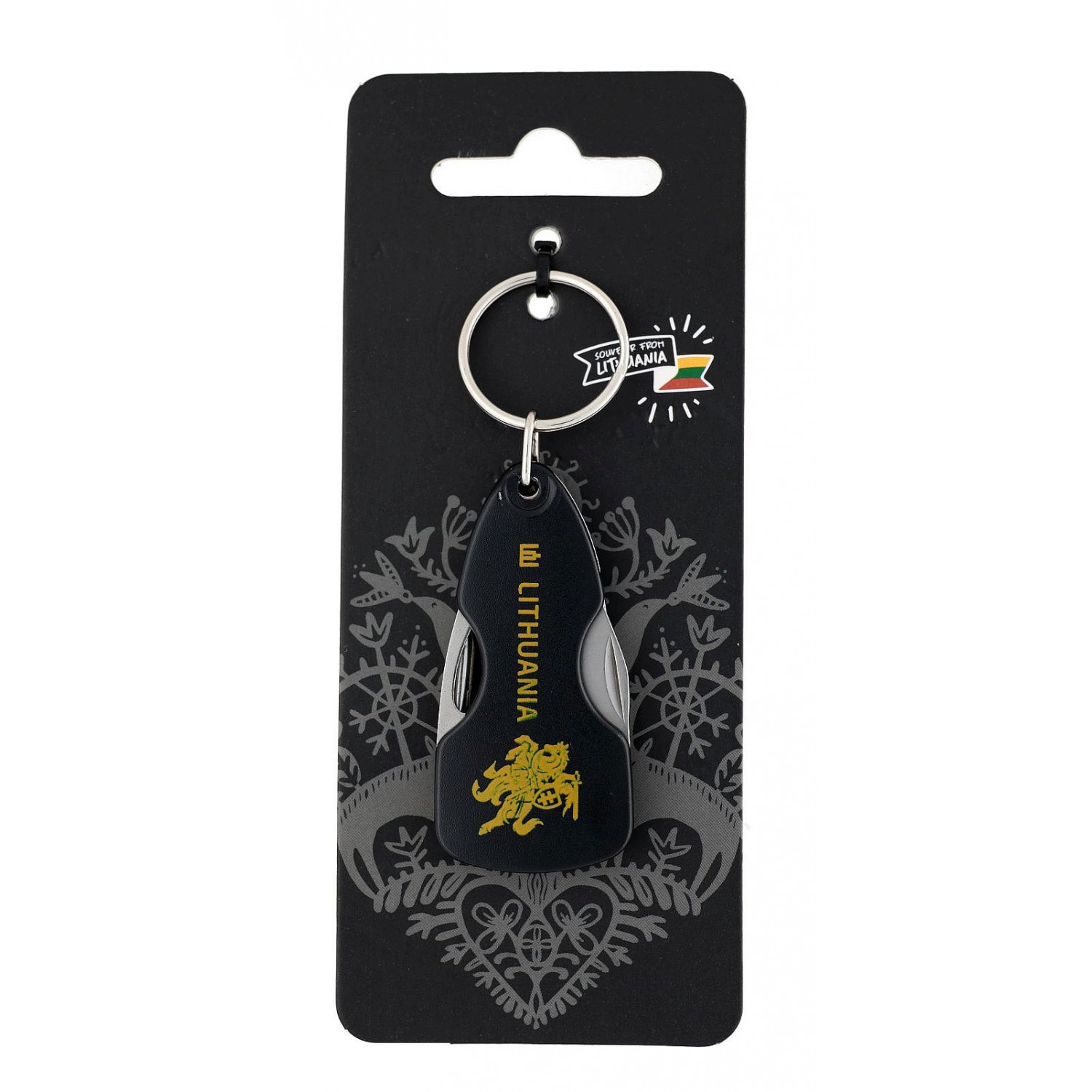 Convenient pocket knife with three functions, decorated with the Vytis emblem and the inscription Lithuania. Comes with a keyring for easy carrying. Practical and compact souvenir.