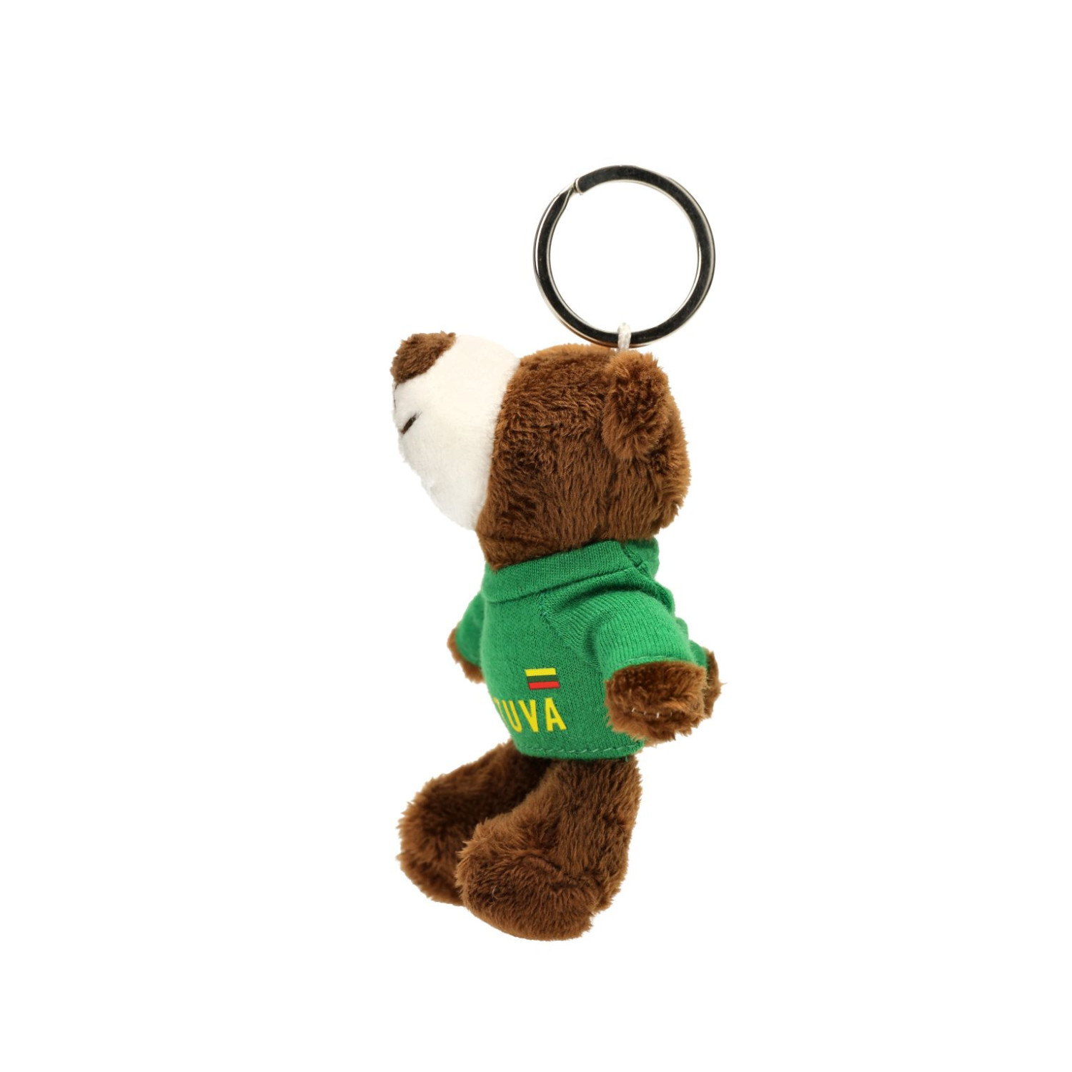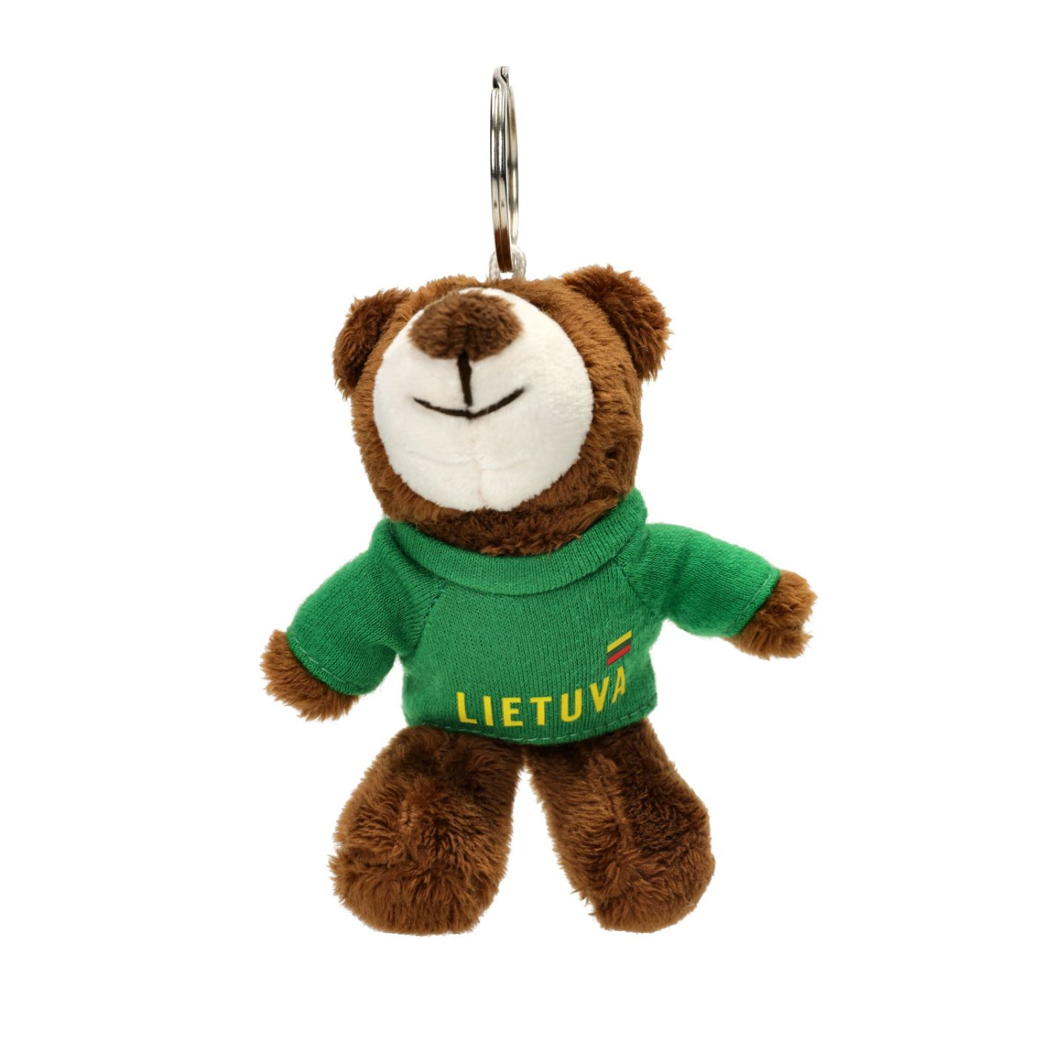 A cute and soft teddy bear keychain wearing a green shirt with Lithuania printed on it. Perfect as a Lithuanian souvenir or gift, also available for wholesale.