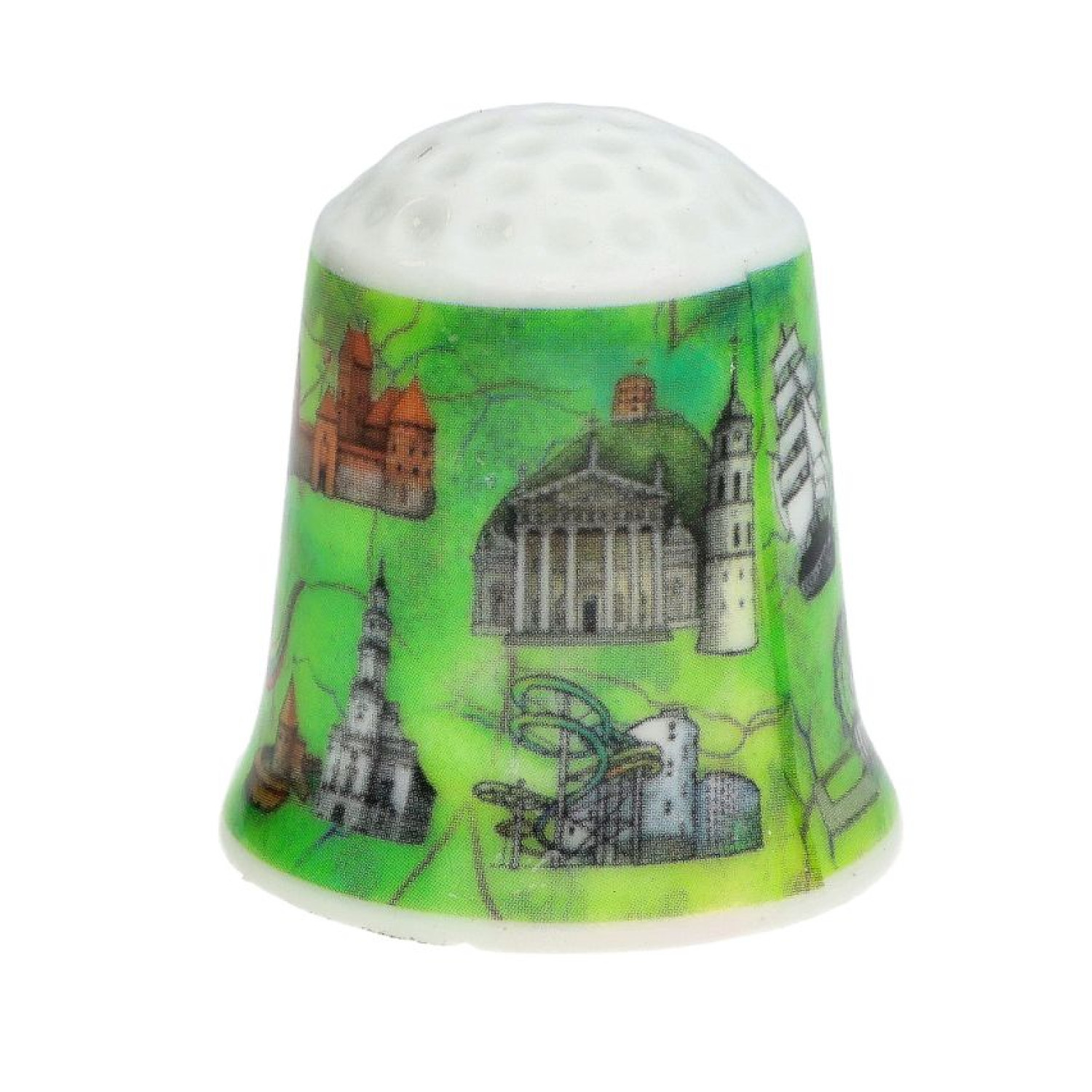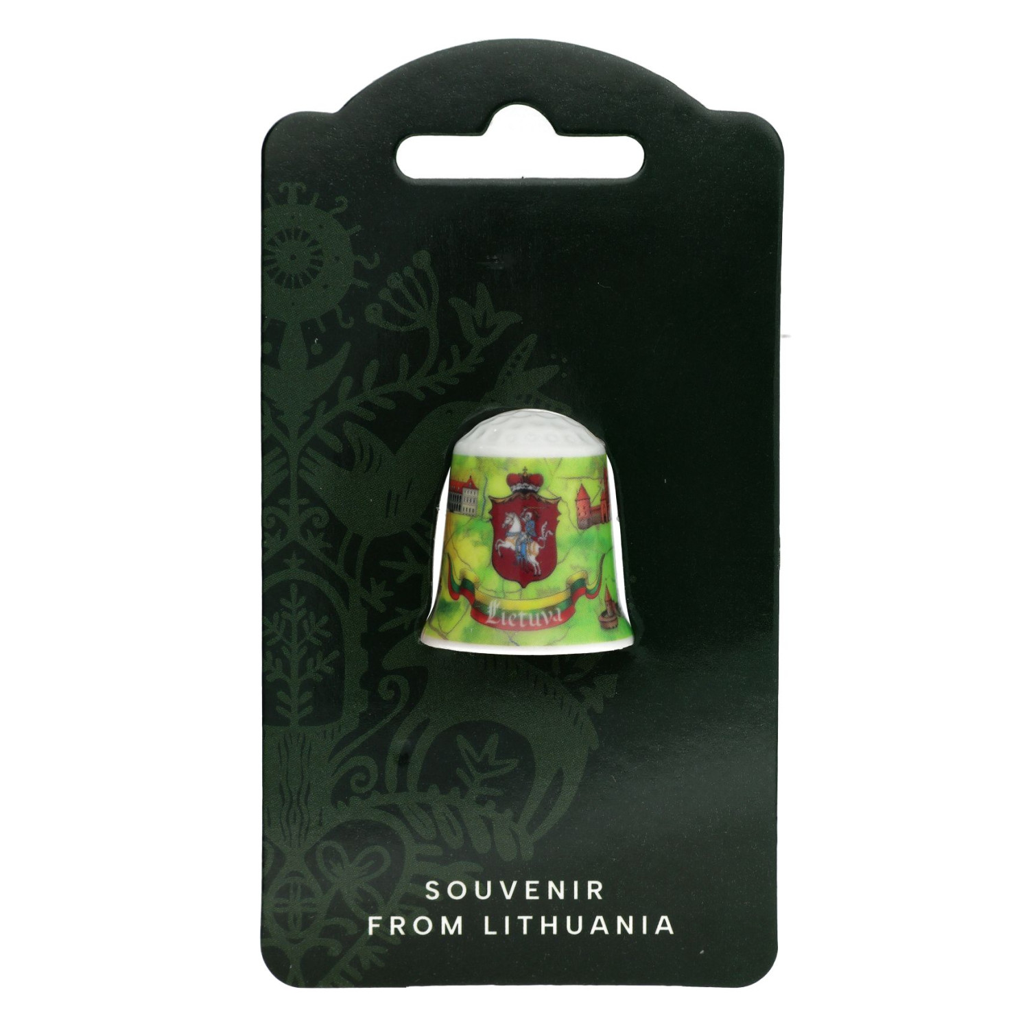 An exclusive porcelain thimble decorated with symbols of Lithuanian cities and the image of Vytis – it is not only practical but also holds collectible value. The subtle design with traditional Lithuanian motifs makes this item a perfect souvenir, gift, or collector’s piece.
