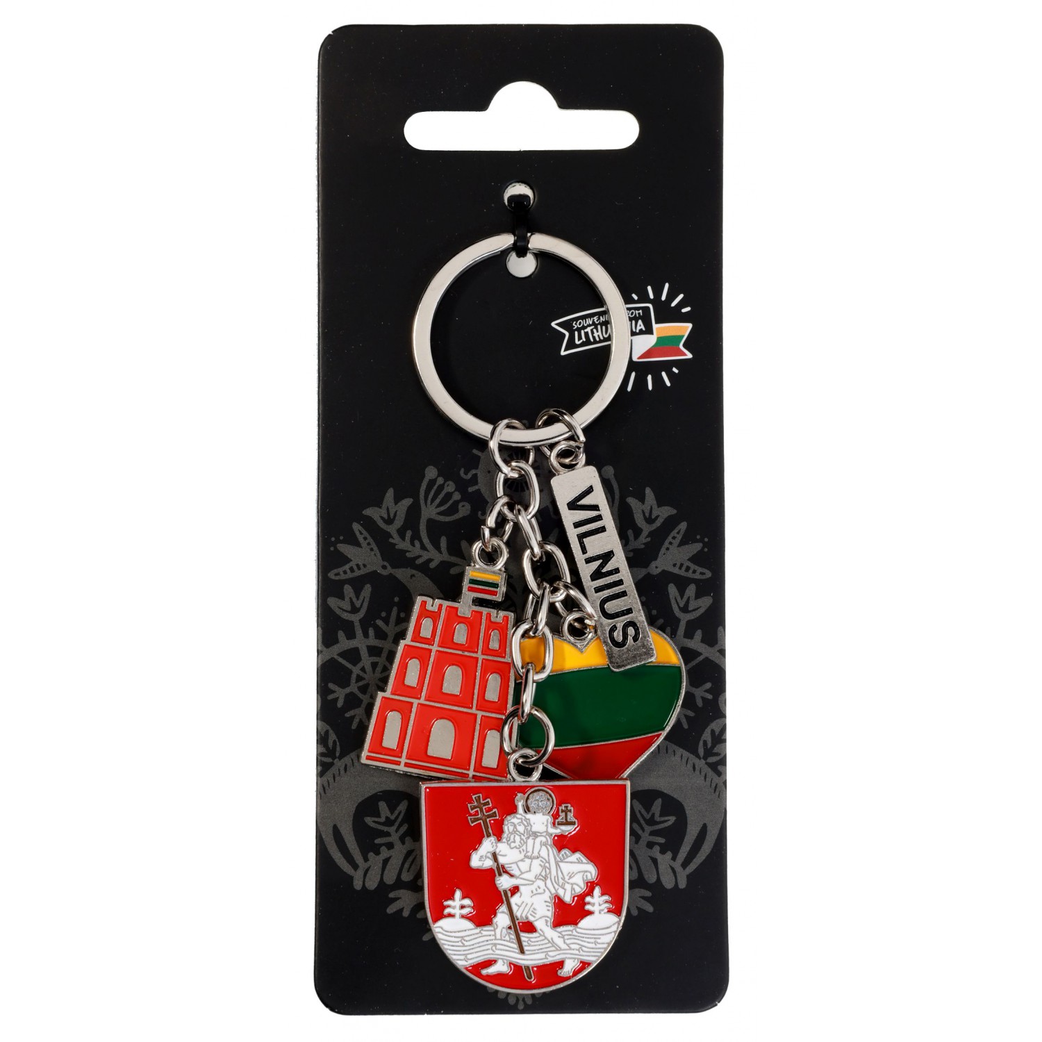 Three-part metal keychain with Vilnius symbols: the city coat of arms, the Lithuanian tricolor in the shape of the country, and Gediminas’ Tower. Each detail reflects the spirit and cultural heritage of the capital. A durable, colorful, and vibrant accessory – an excellent choice for souvenir retail.