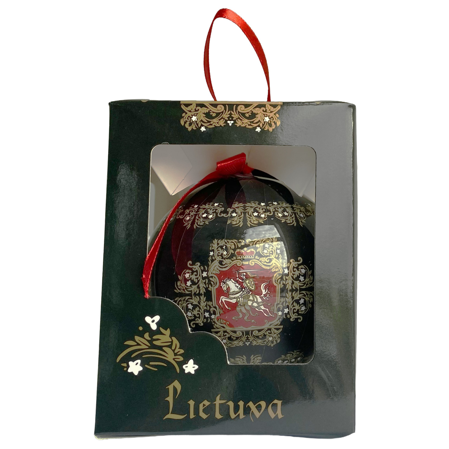 Išskirtinis dekoratyvinis juodos spalvos žaisliukas su Lietuvos simboliu Vyčiu. Elegantiški auksiniai ornamentai ir raudonas kaspinas suteikia ypatingo išskirtinumo. Puikiai tinka kaip dovana ar tautinis suvenyras.