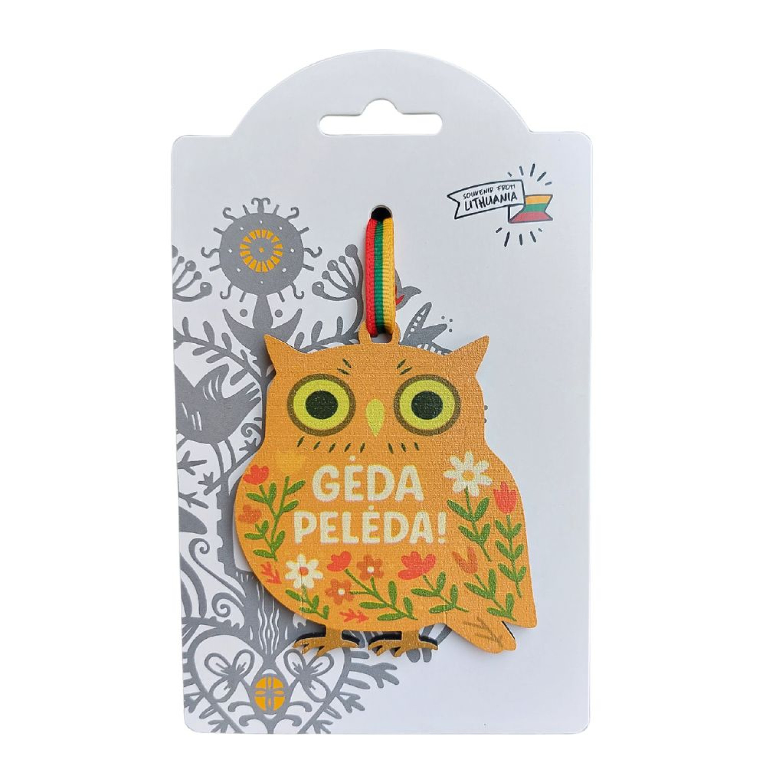 Pakabinama dekoracija paukštis Pelėda su užrašu lietuvišku frazeologizmu „Gėda pelėda!“ – smagus ir išraiškingas tautinio stiliaus akcentas jūsų namams ar dovanai. Ši dvipusė medinė dekoracija dekoruota lietuvių liaudies ornamentais, kurie suteikia žaismingumo ir autentiškumo.