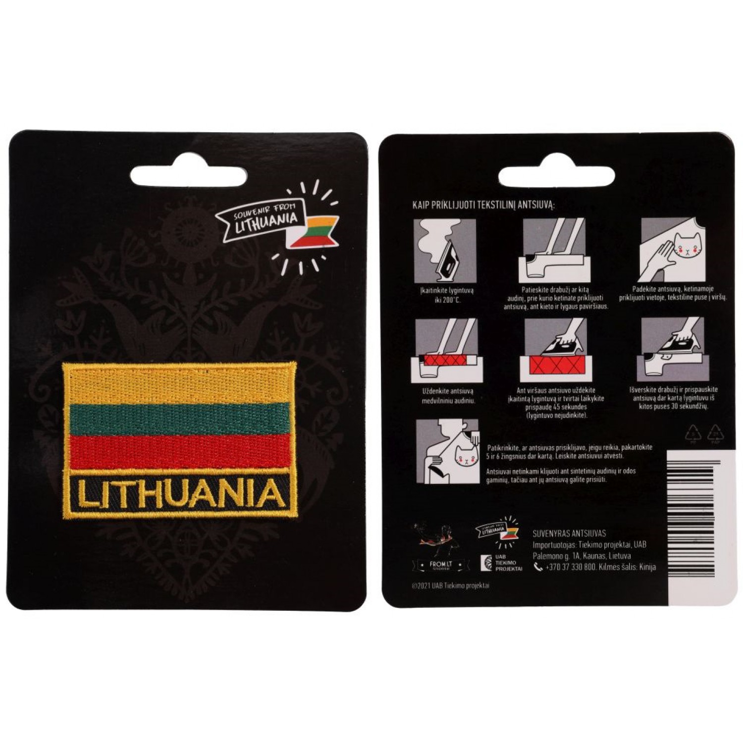 Medžiaginis antsiuvas su Lietuvos vėliavos spalvomis ir užrašu Lietuva. Priklijuojamas karštu lygintuvu – paprastas ir greitas būdas papuošti drabužius, kuprinę ar kitą tekstilę. Puikiai tinka kaip suvenyras ar patriotinė detalė.
