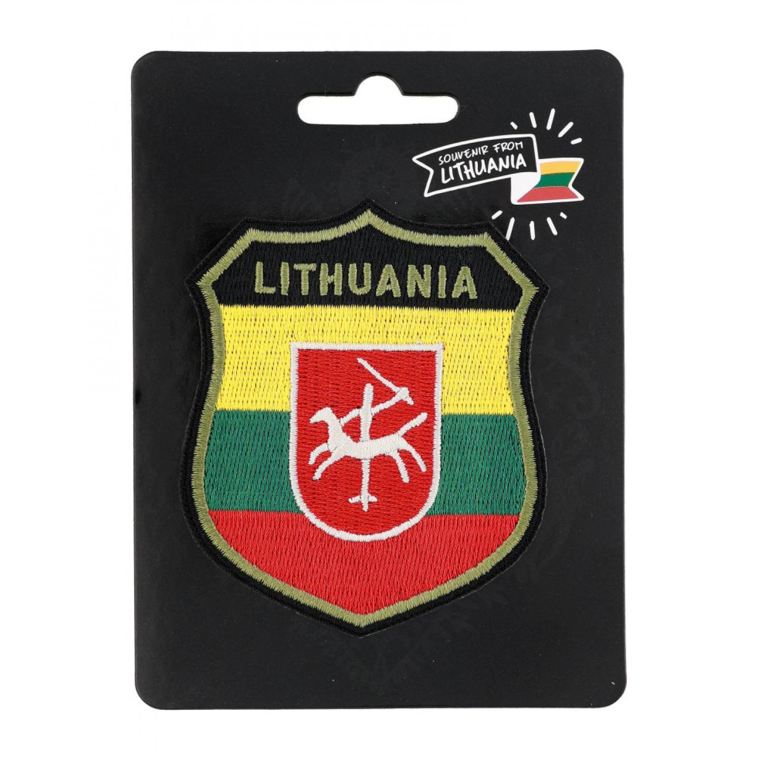 Antsiuvas su senuoju Vyčiu Lietuvos trispalvės fone ir užrašu Lithuania. Priklijuojamas karštu lygintuvu prie tekstilės – patogu ir patriotiška.