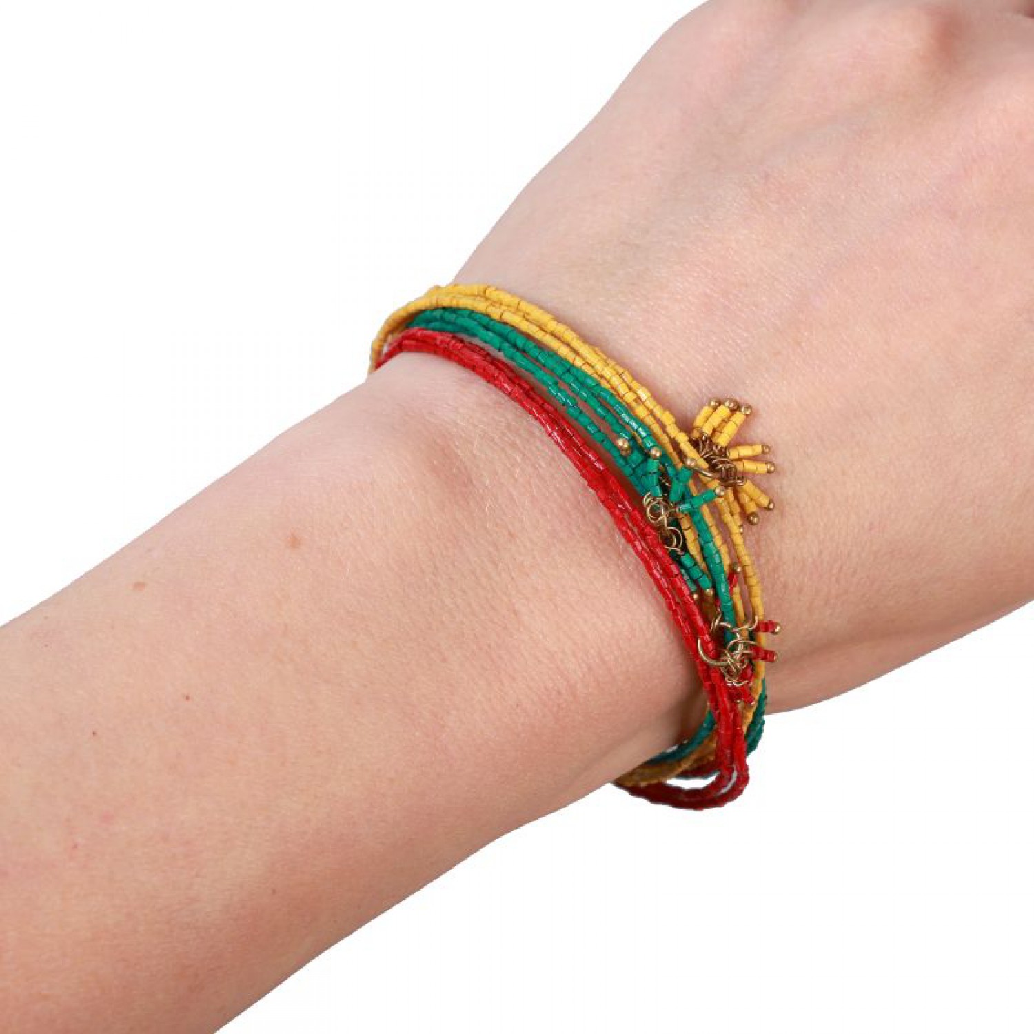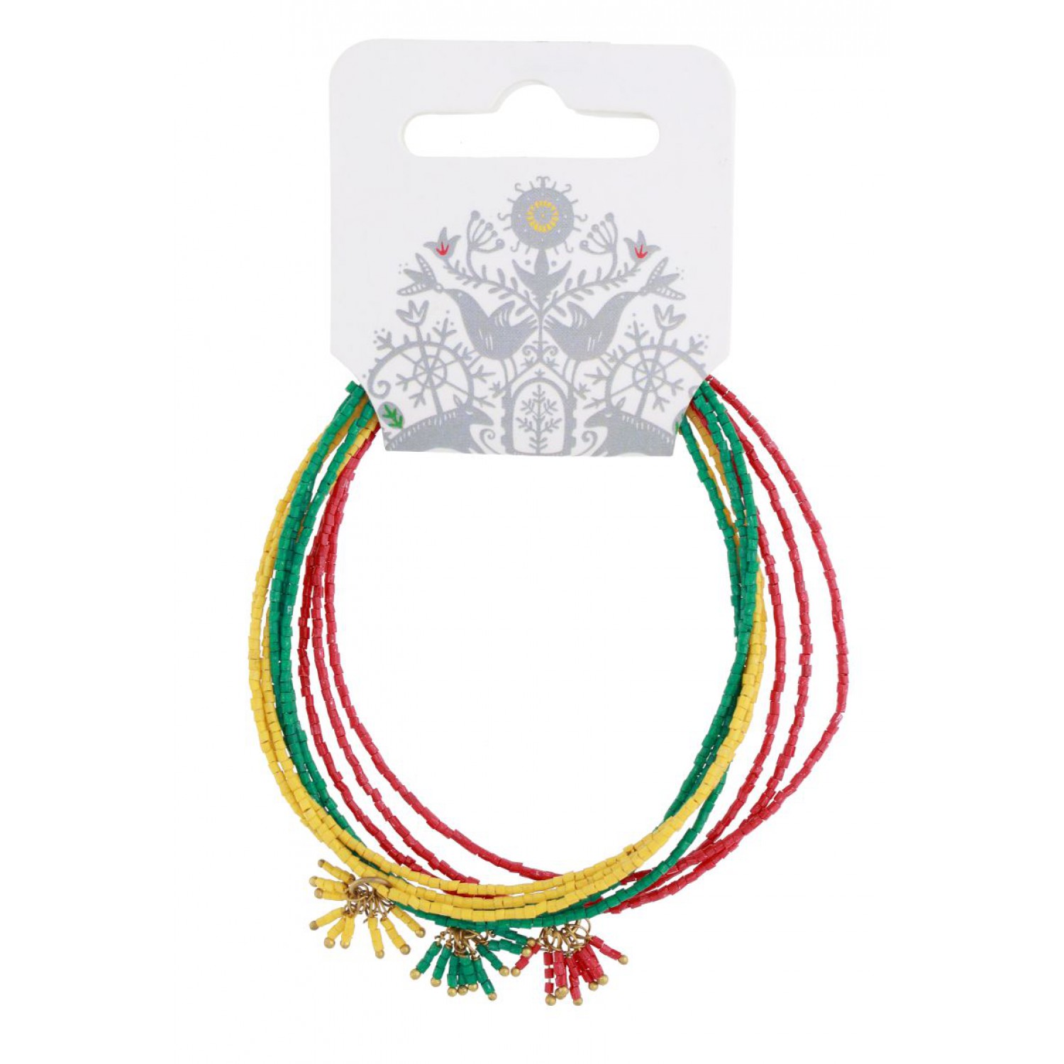 Apyrankė iš smulkių karoliukų su tautiškomis spalvomis – geltona, žalia ir raudona. Minimalistinis, bet prasmingas aksesuaras kiekvienam, norinčiam subtiliai parodyti meilę Lietuvai. Puikiai tinka kasdieniam nešiojimui ar kaip nedidelė dovana.