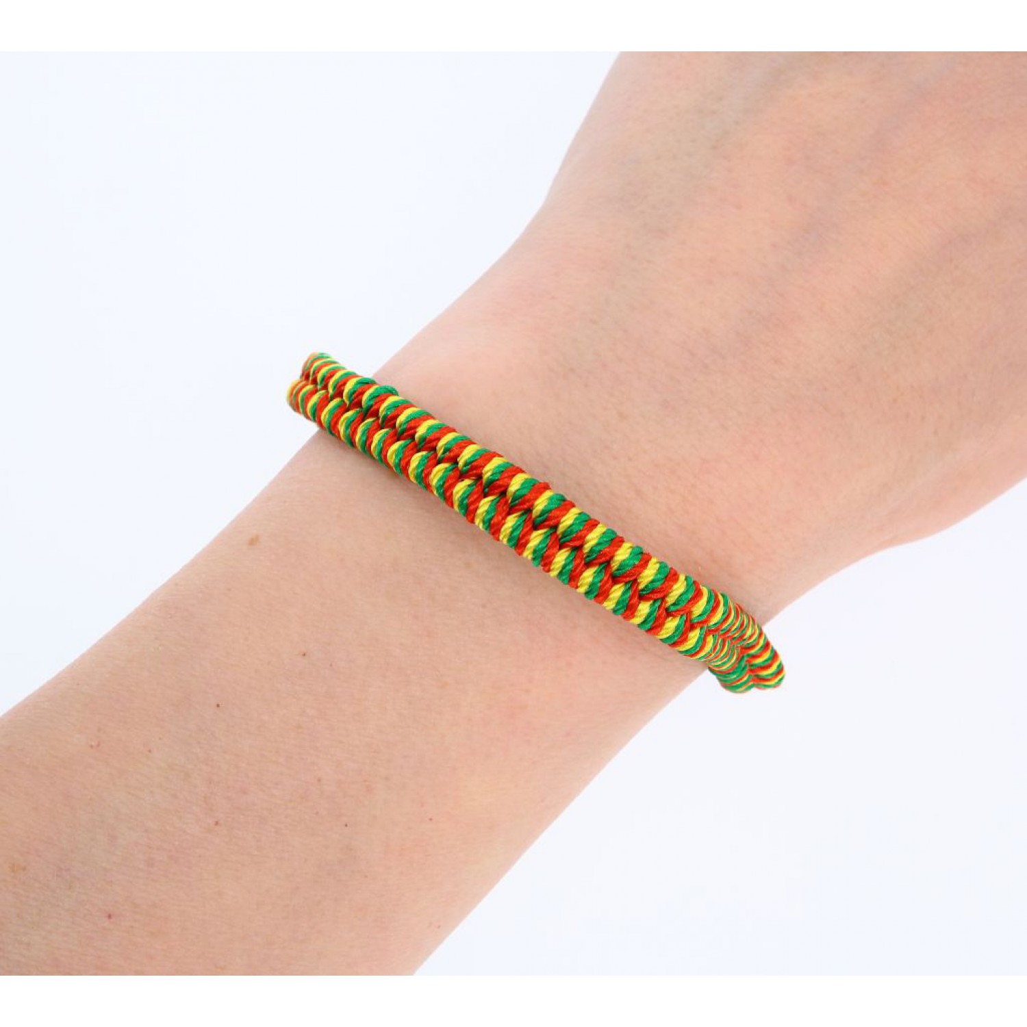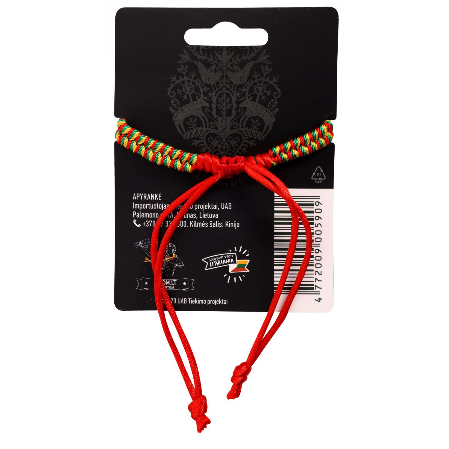 Stilinga dviejų juostų apyrankė, pinta iš virvelių, su Lietuvos trispalvės – geltonos, žalios ir raudonos – akcentais. Reguliuojamo dydžio, tinkama tiek vyrams, tiek moterims. Puikus būdas subtiliai išreikšti tautiškumą ir papildyti kasdienį stilių.