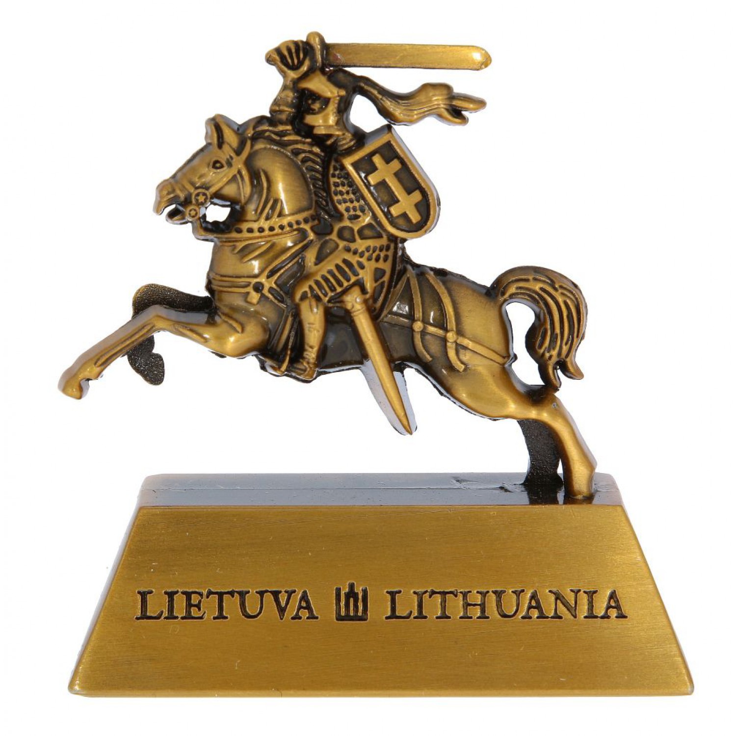 Dekoratyvinė skulptūra, vaizduojanti Vytį – vieną svarbiausių Lietuvos valstybės simbolių. Raitelis su pakeltu kalaviju ir skydu pavaizduotas judesyje. Aukso spalvos skulptūra, pagaminta iš tvirto metalo lydinio. Ant pagrindo graviruotas užrašas LIETUVA ir LITHUANIA. Tai solidus ir vizualiai išraiškingas suvenyras, tinkantis prekybai.