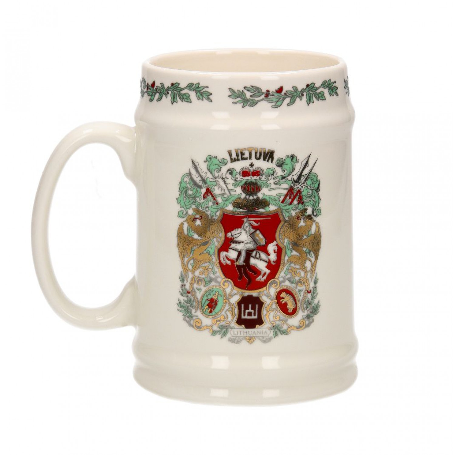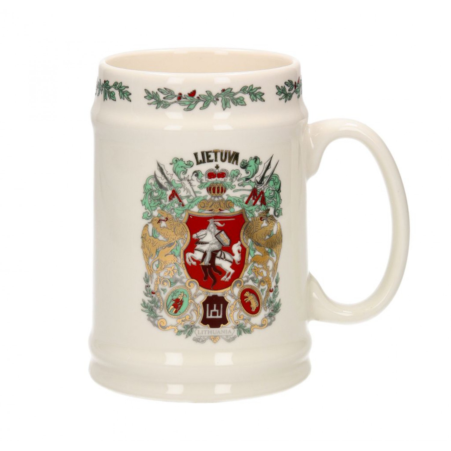 Baltas porcelianinis bokalas su Vyčiu ir užrašu Lietuva