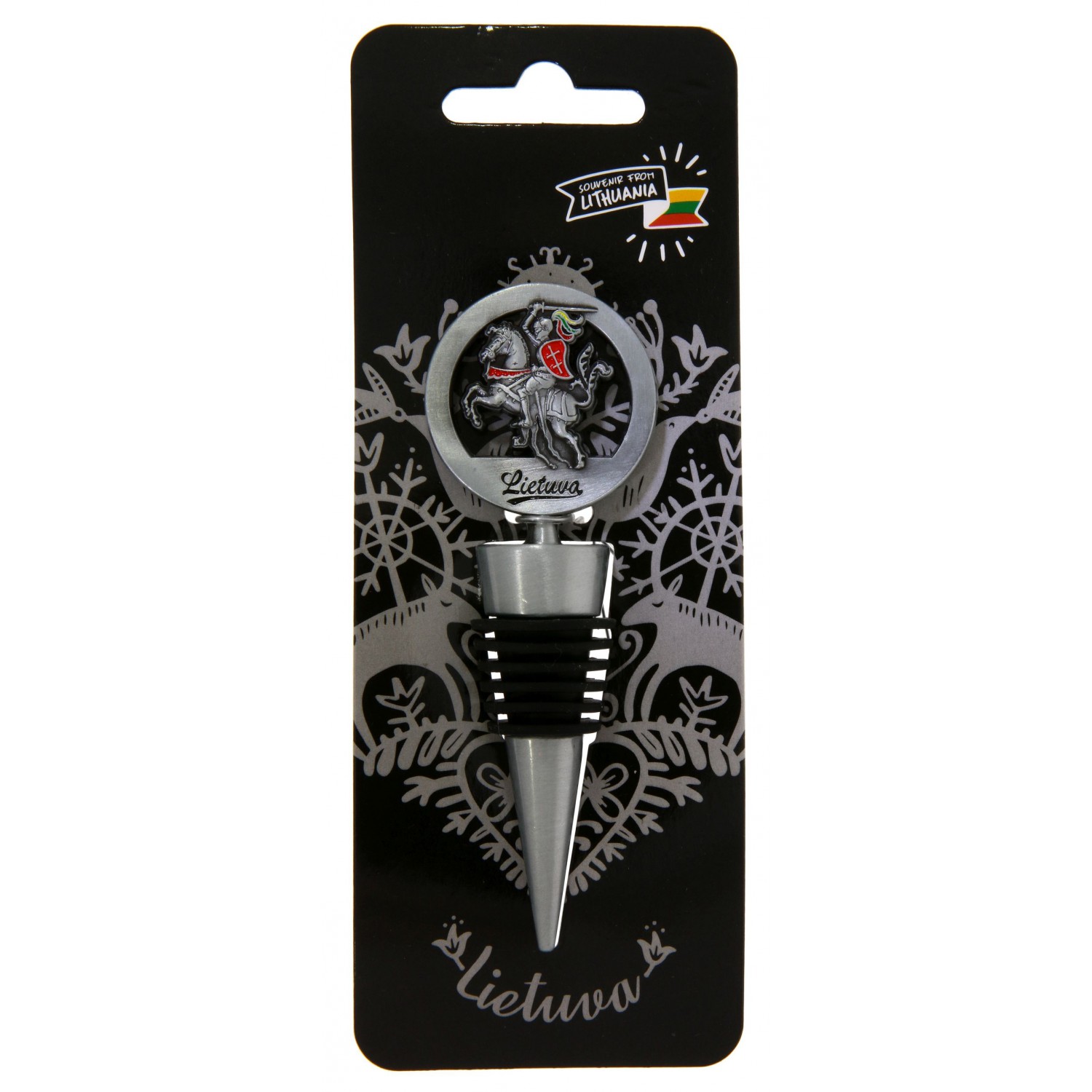 Suvenyras – butelio kamštis, dekoruotas Lietuvos valstybiniu herbu Vyčiu ir užrašu Lietuva. Pagamintas iš metalo. Tvirtas ir funkcionalus, pritaikytas naudoti kaip stilingas tautinis akcentas namuose ar kaip praktiška dovana.