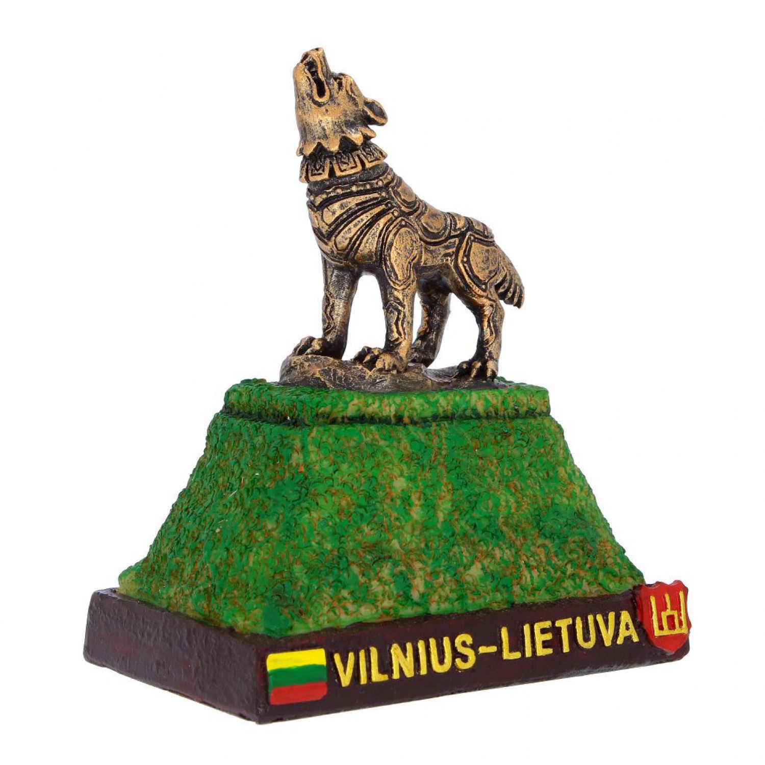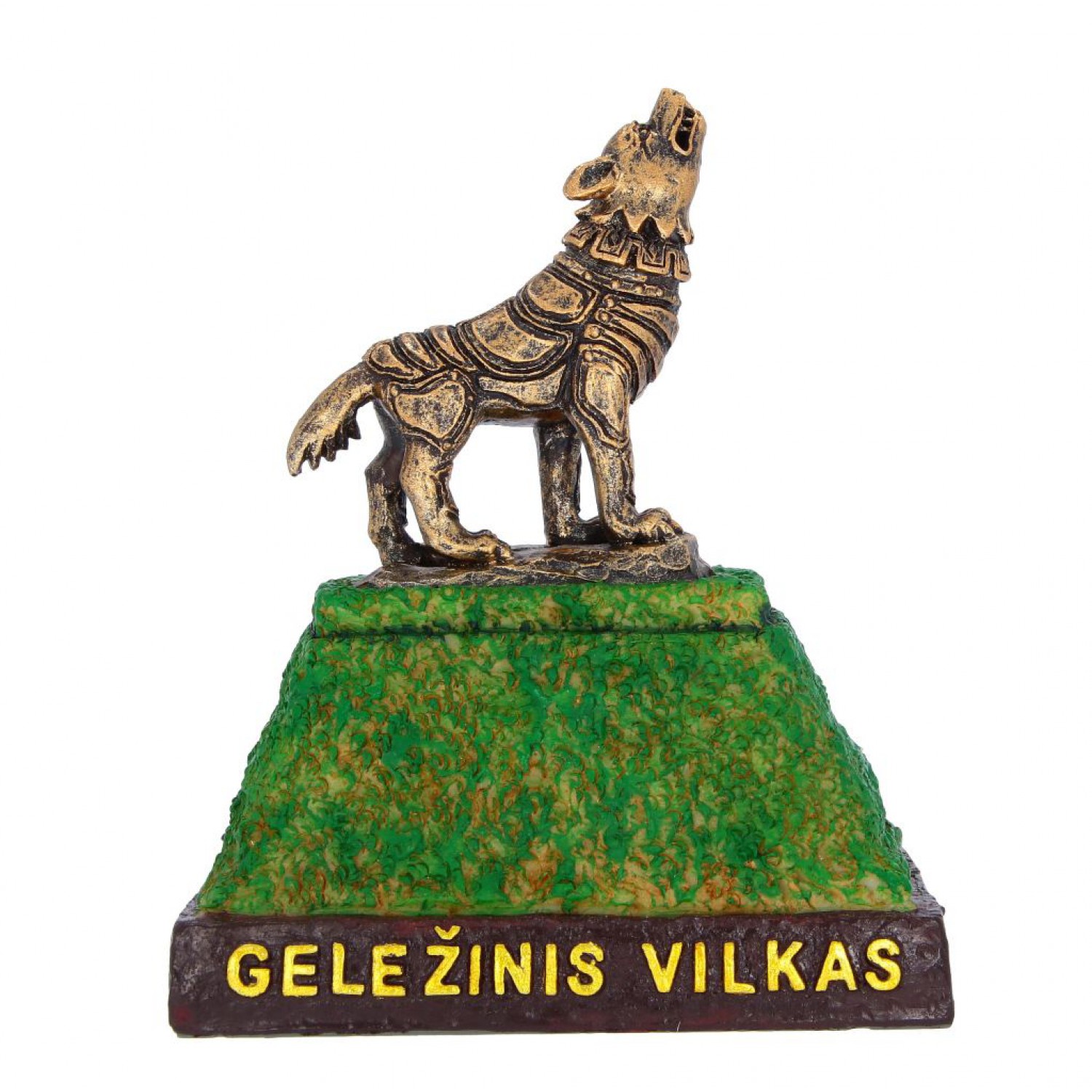 Dekoratyvinė suvenyrinė skulptūra Geležinis vilkas – vienas iš žymiausių Vilniaus simbolių, vaizduojamas ant stilizuoto kalno su užrašu Vilnius–Lietuva. Pagaminta iš lengvo ir patvaraus polirezino, ši skulptūra puikiai papildo interjerą ir primena svarbią istoriją bei miesto legendą.