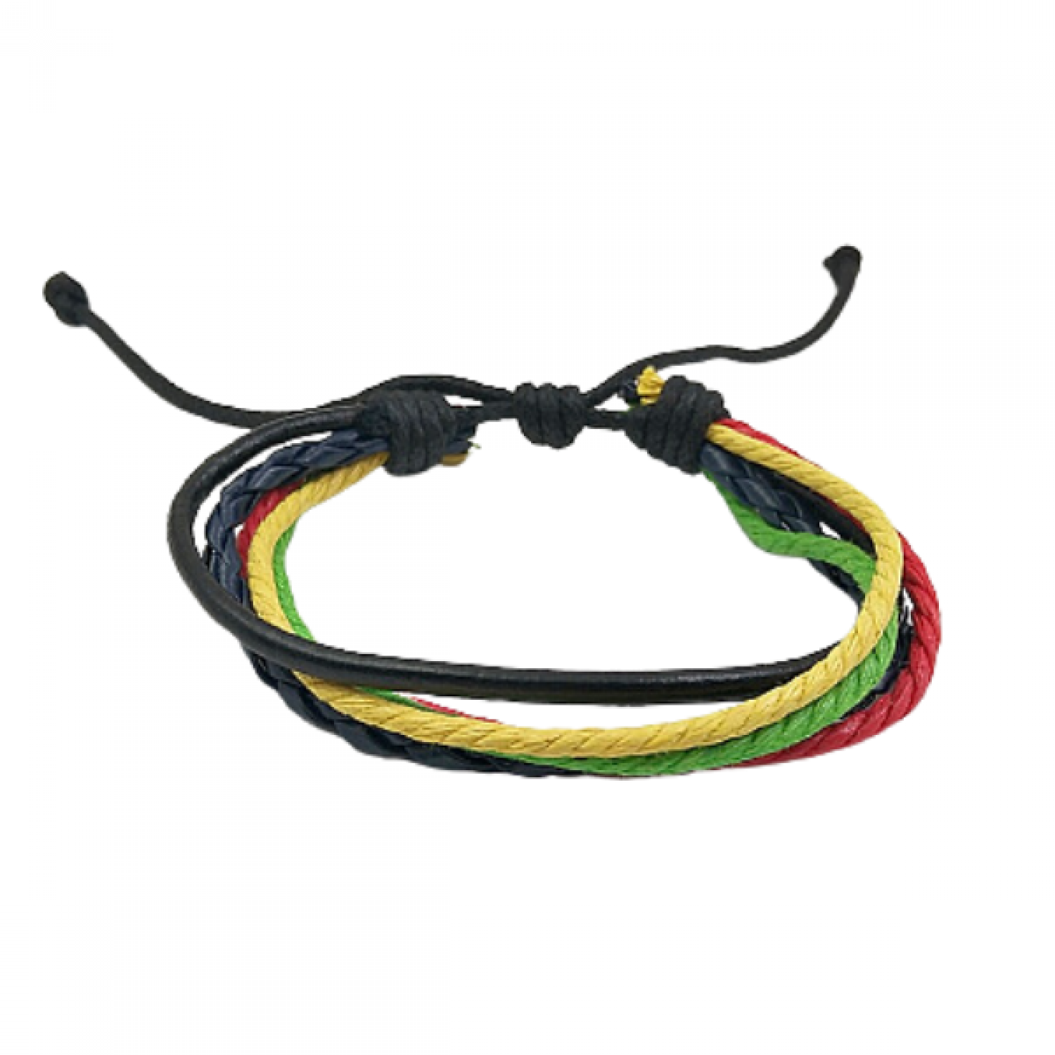 Juoda odinė apyrankė su trispalvėmis virvelėmis