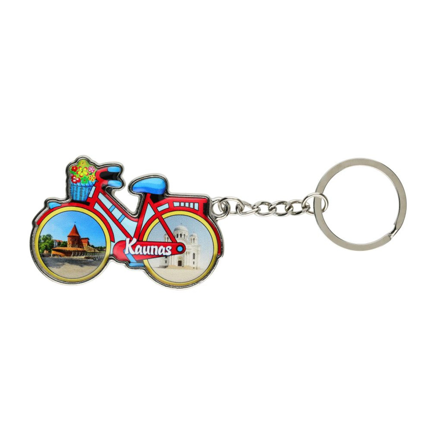 Originalus Kaunas dviračio formos raktų pakabukas – praktiškas ir stilingas suvenyras iš Lietuvos laikinosios sostinės. Raktų pakabukas dekoruotas Kauno simboliais, primins kelionę ir taps gražia dovana artimam žmogui.