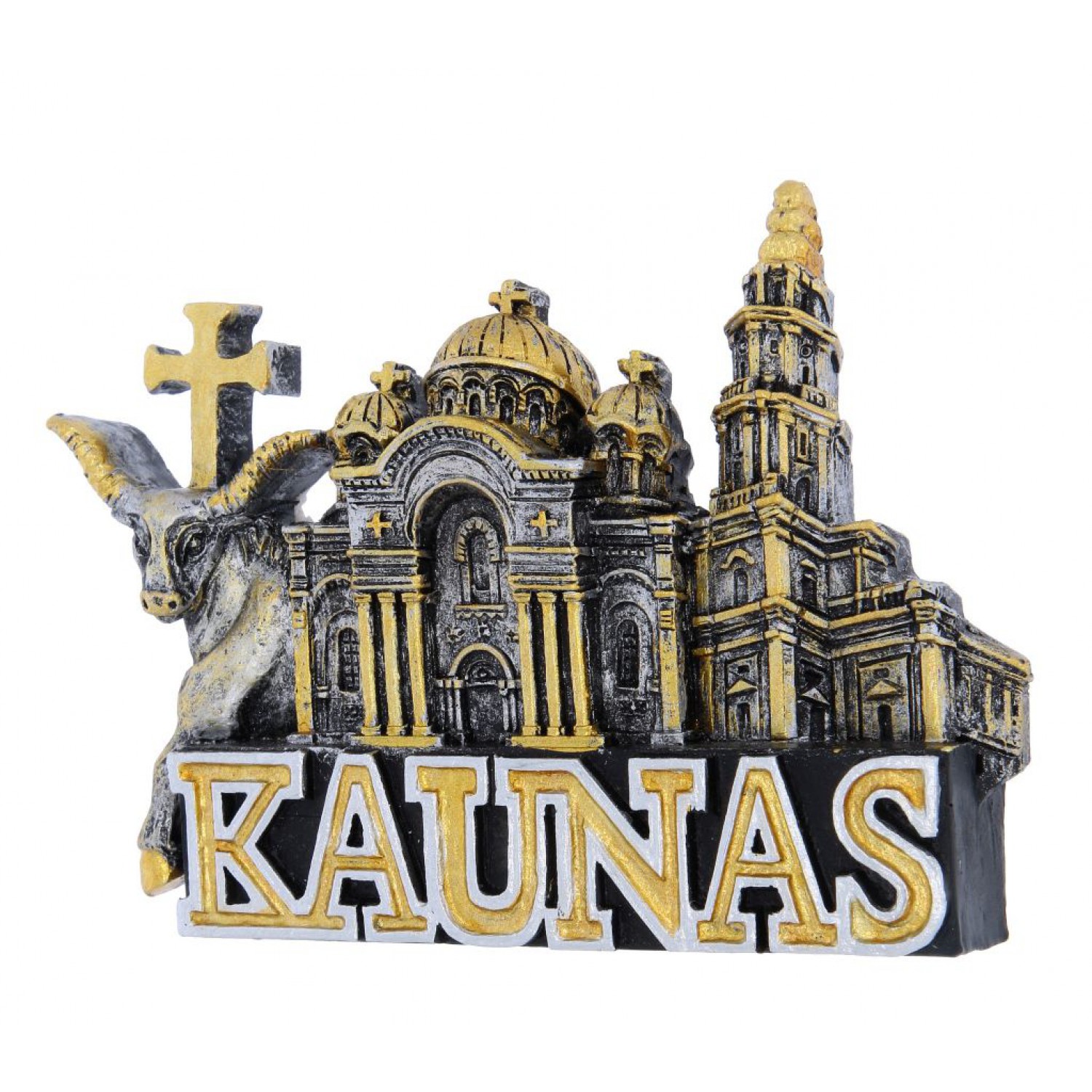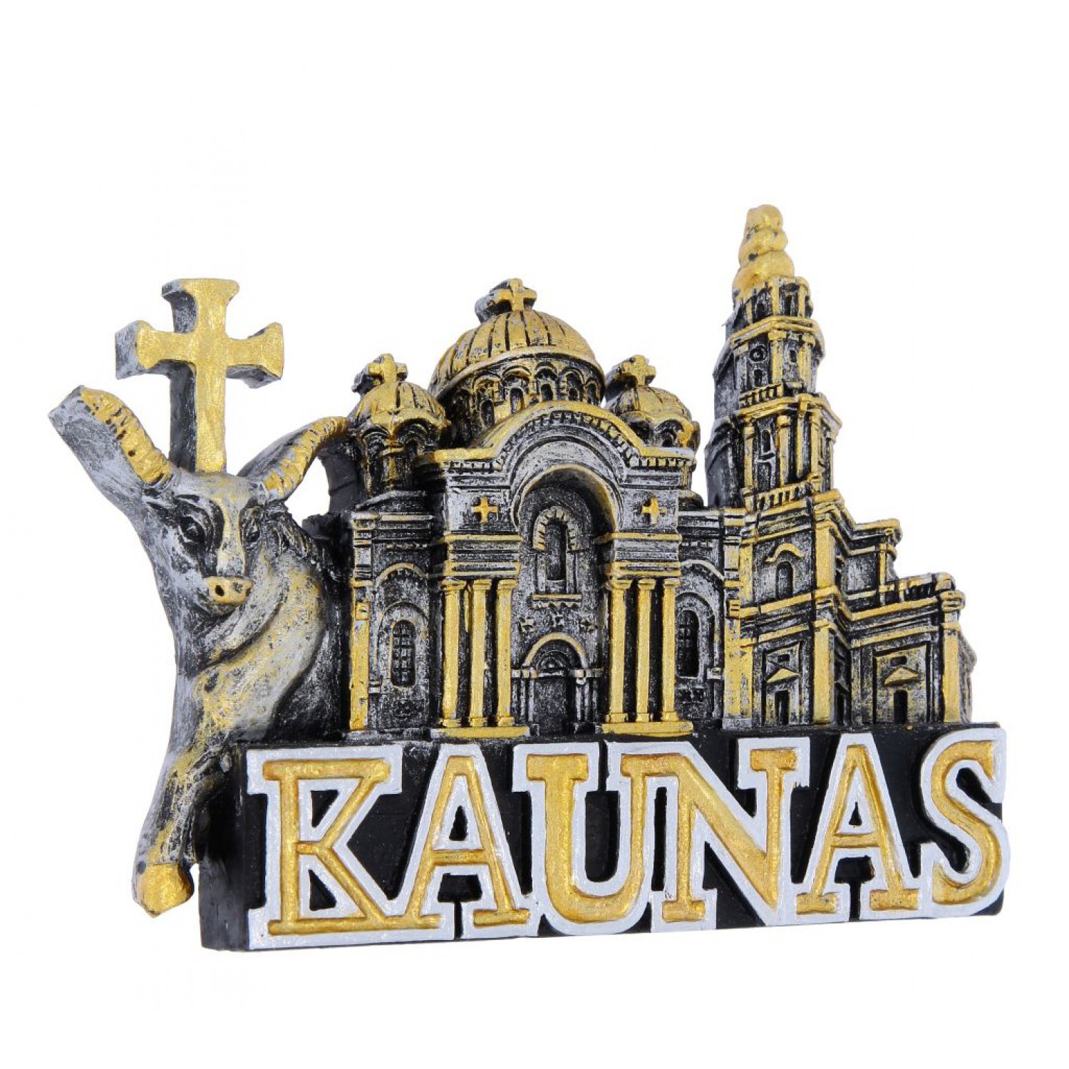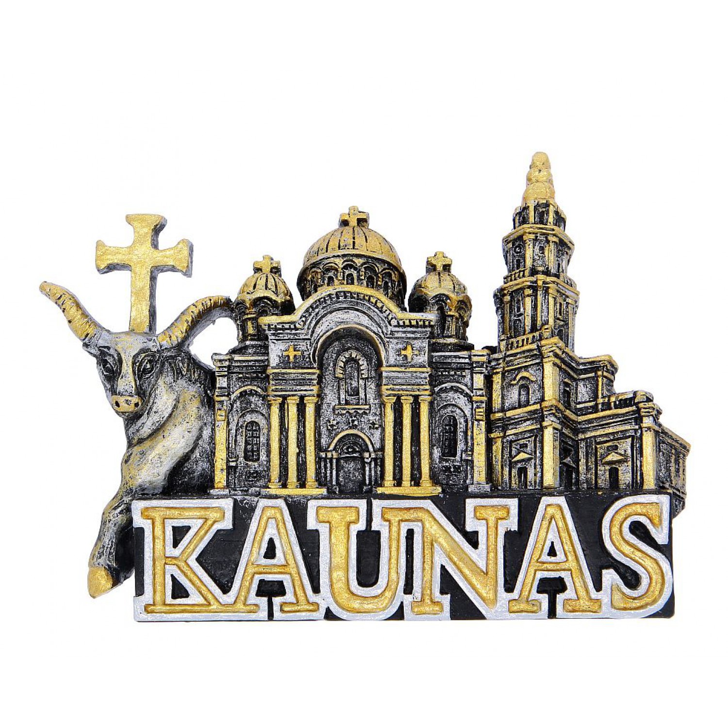 Polirezino magnetas centre vaizduoja Kauno Šv. arkangelo Mykolo bažnyčią (Soborą), kairėje miesto herbą Taurą, dešinėje – rotušę. Spalvos tamsios – sidabro, aukso ir juodos. Užrašas Kaunas – ryškus aukso ir baltos spalvų derinys.