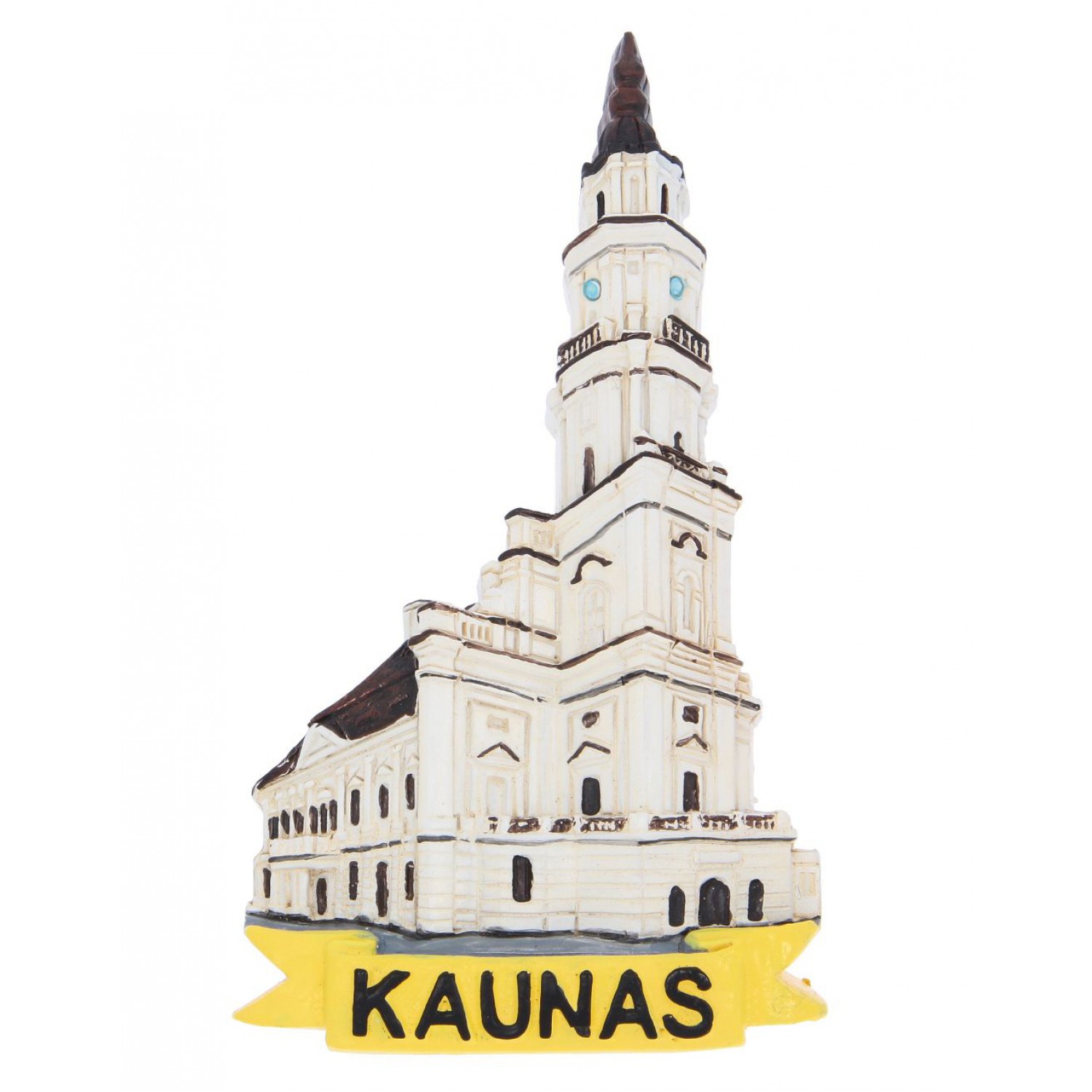 Suvenyrinis magnetas, vaizduojantis Kauno rotušę – vieną iš svarbiausių miesto simbolių. Pagamintas iš kokybiško polirezino, šis magnetas puikiai tinka pritvirtinti prie šaldytuvo ar kitų metalinių paviršių.