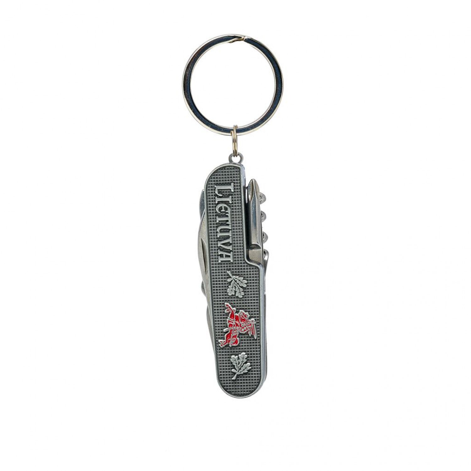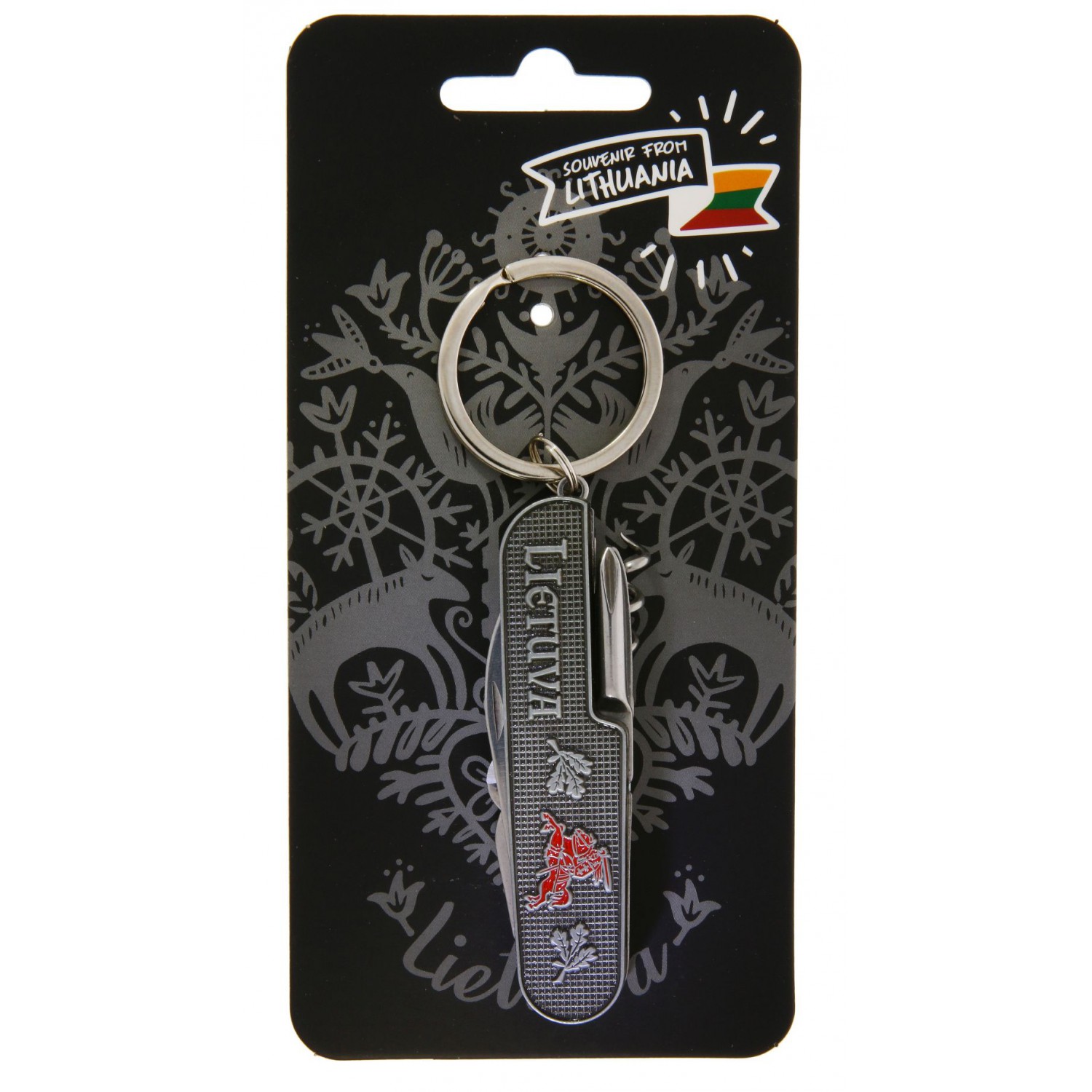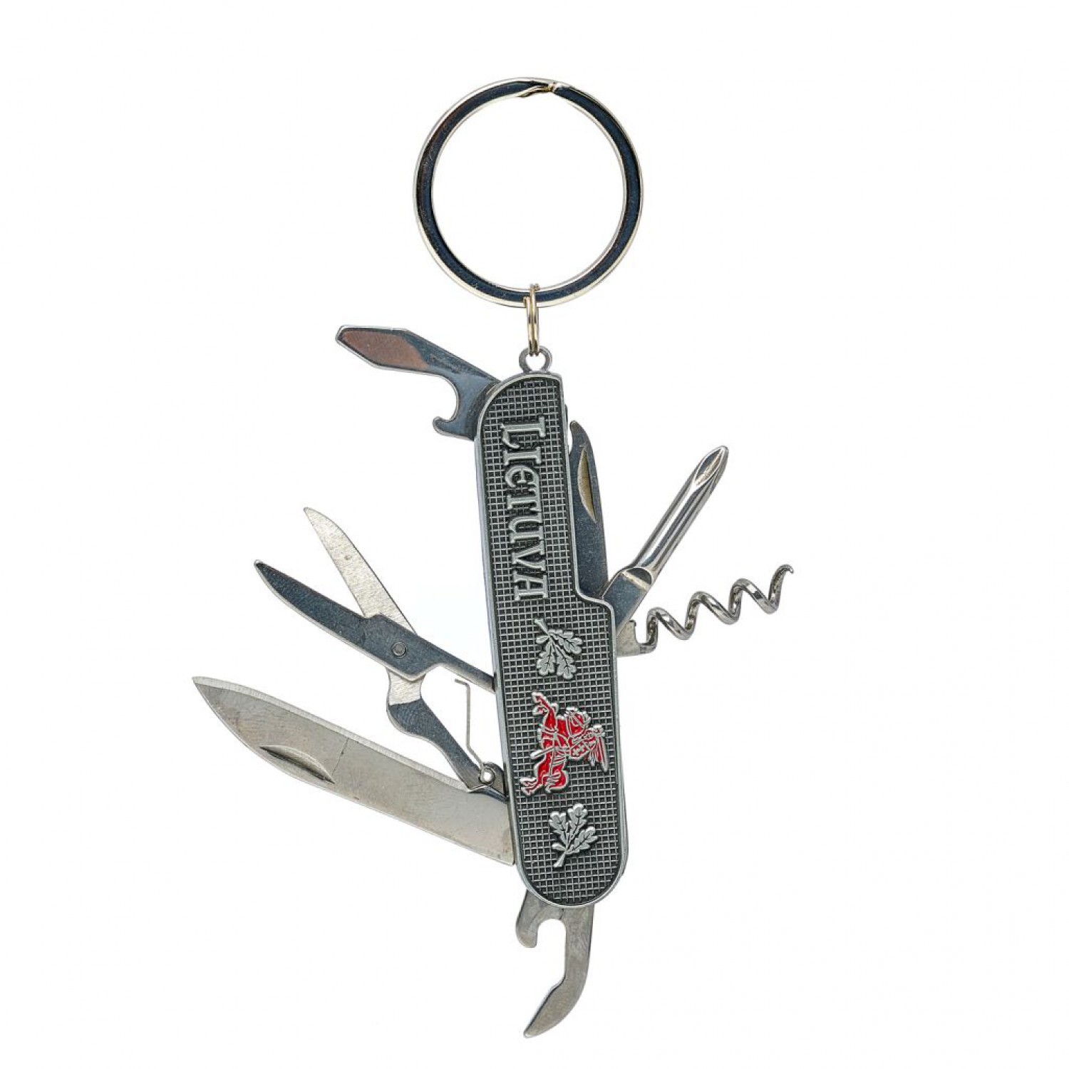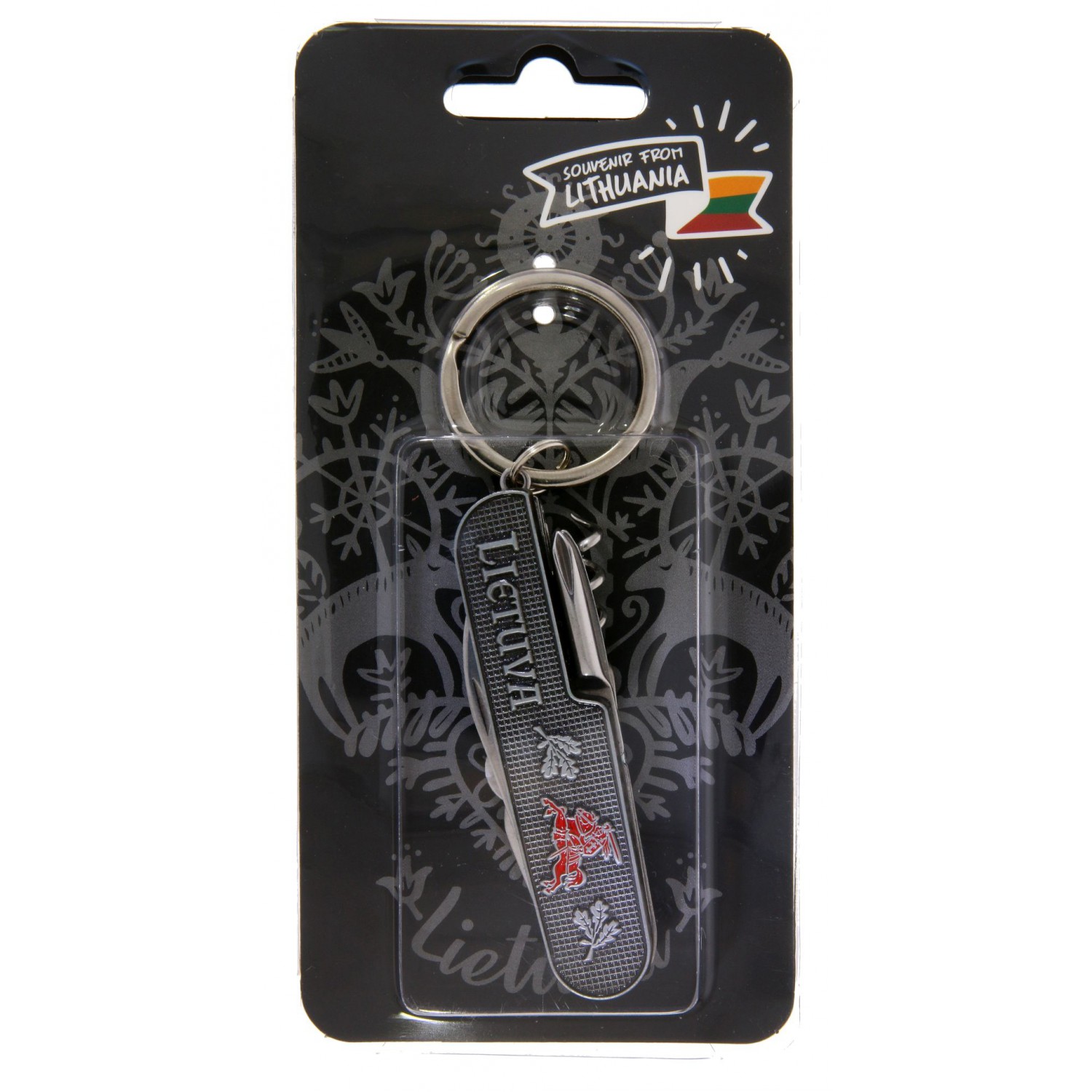 Tvirtas suvenyrinis kišeninis peiliukas su 7 funkcijomis ir raktų žiedu. Dekoruotas iškiliu užrašu Lietuva bei Vyčio simboliu. Kompaktiškas ir praktiškas, patogus kasdieniam naudojimui ar kelionėse.