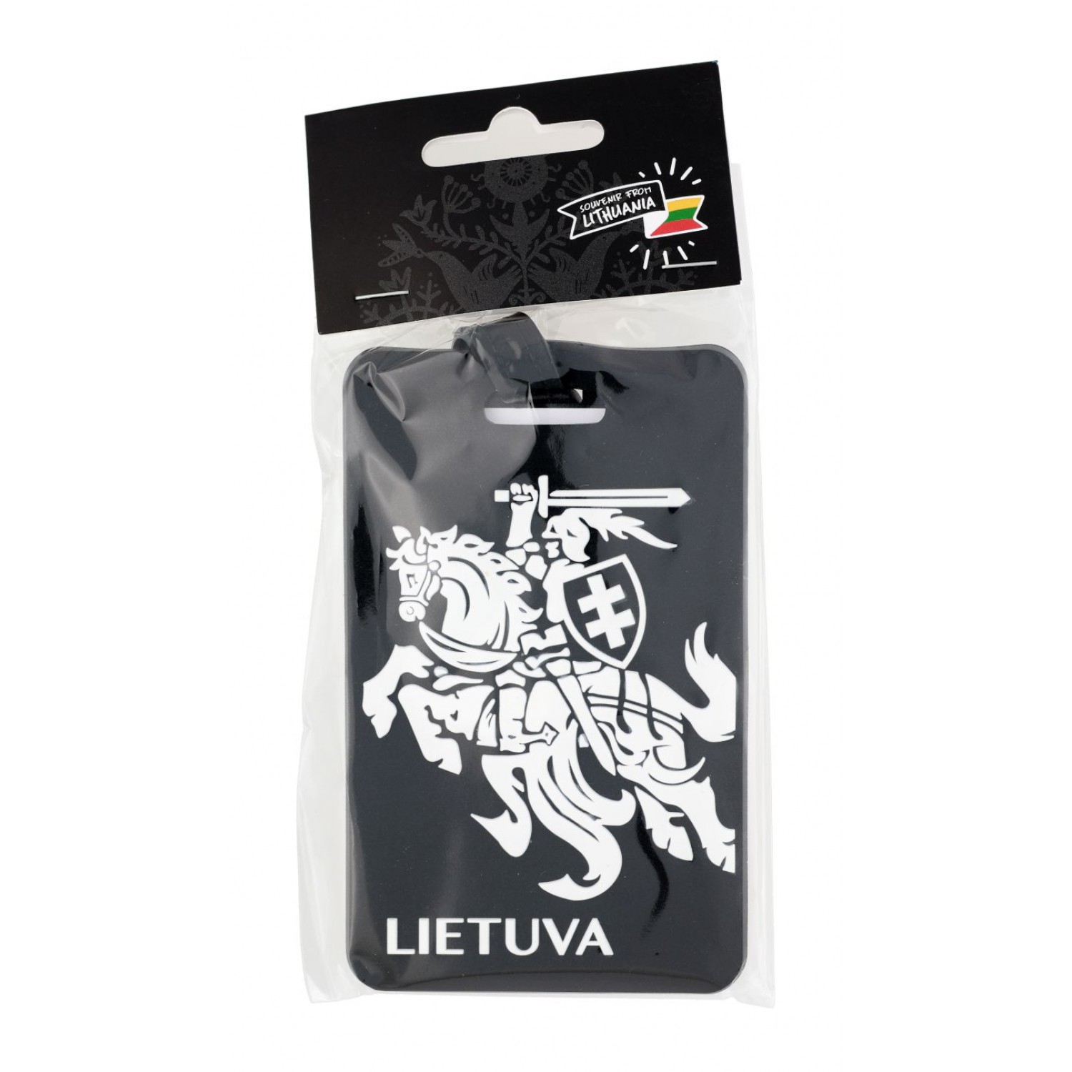 Lagamino žymeklis su pavaizduotu Vyčiu juodame fone. Suvenyrinis žymeklis, kuriame yra speciali vieta vardui ir pavardei užrašyti, todėl tai puiki dovana keliautojams ir patriotams. Tvirtas ir stilingas aksesuaras, padėsiantis lengvai atpažinti savo bagažą.