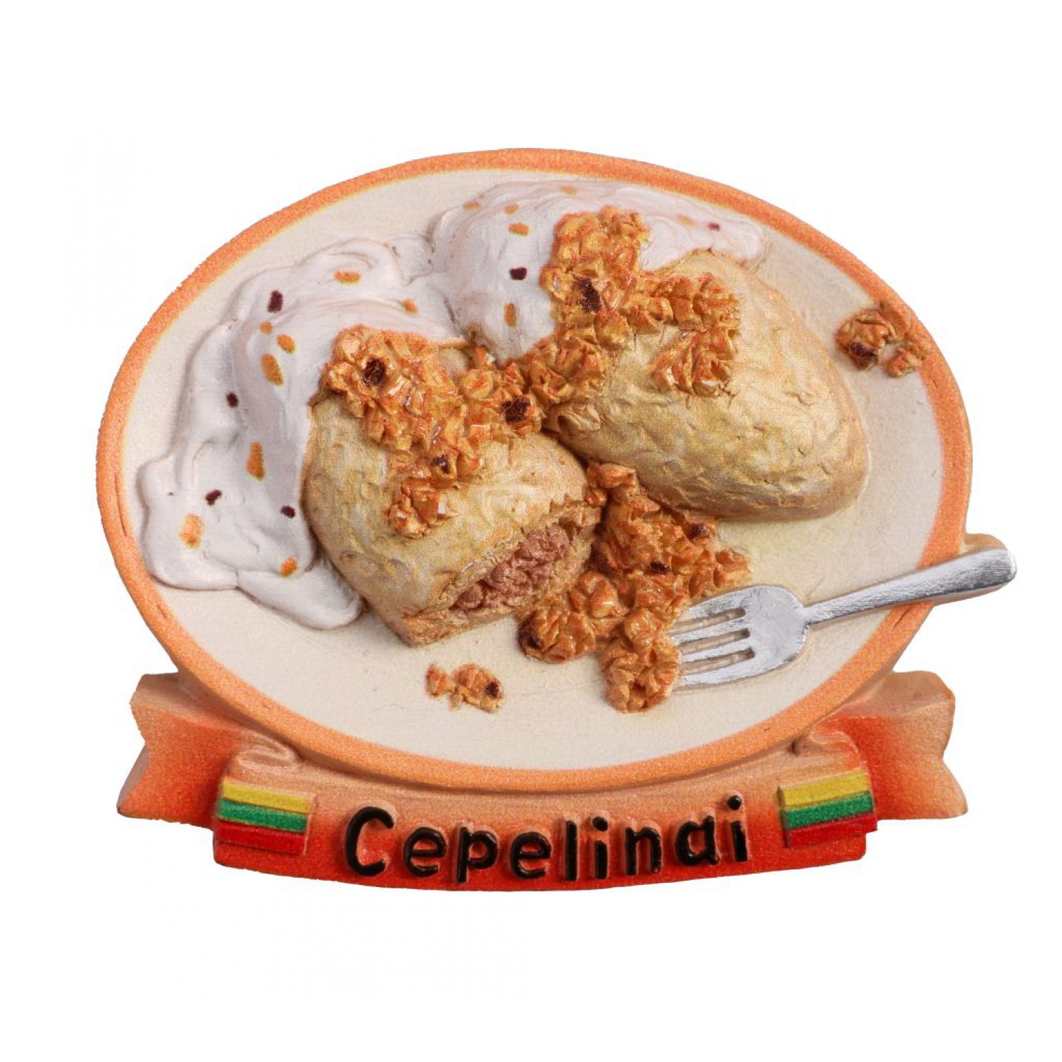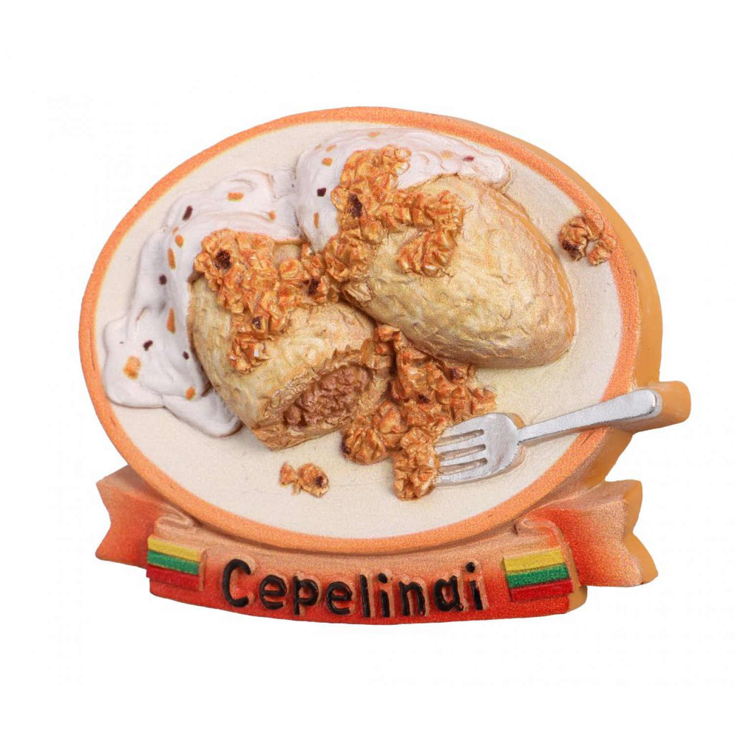 Suvenyrinis magnetas su cepelinų – vieno žymiausių lietuviškų patiekalų – atvaizdu. Priklauso serijai „Lietuviški patiekalai“, kuri atspindi tradicinės virtuvės įvairovę ir kultūrinę svarbą. Spalvingas, linksmas ir atpažįstamas dizainas primena apie lietuvišką kulinarinį paveldą.