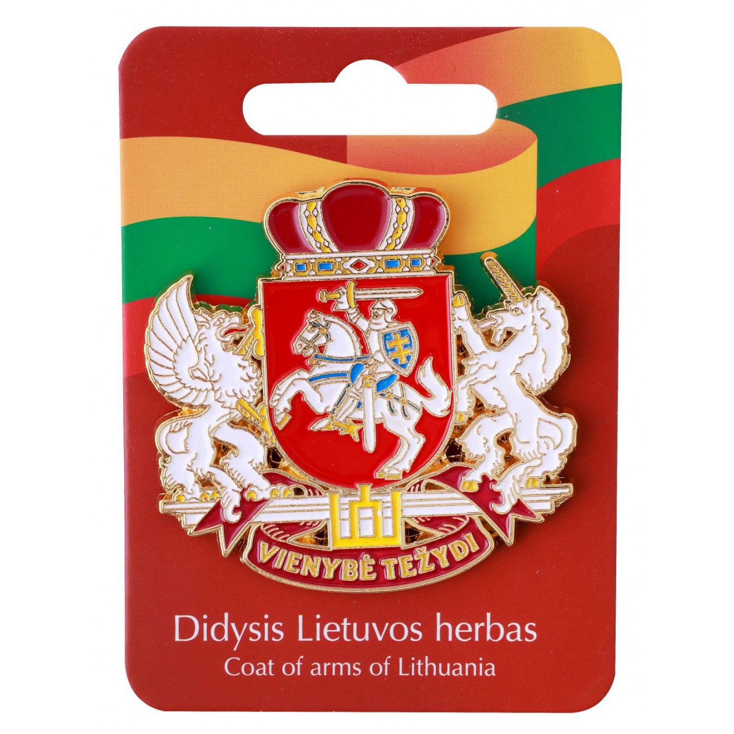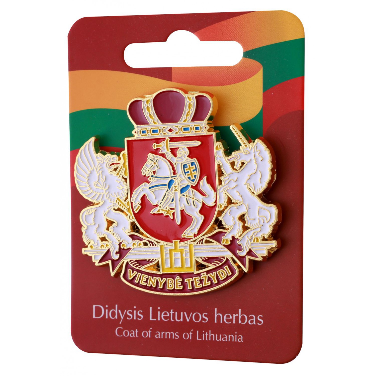 Metalinis suvenyrinis magnetas su Didžiuoju Lietuvos valstybės herbu. Preciziškai atkurtas herbo dizainas perteikia istorinę simboliką ir valstybingumo vertybes. Kompaktiško dydžio, tinka teminėms kolekcijoms ir tautinės simbolikos pristatymui.