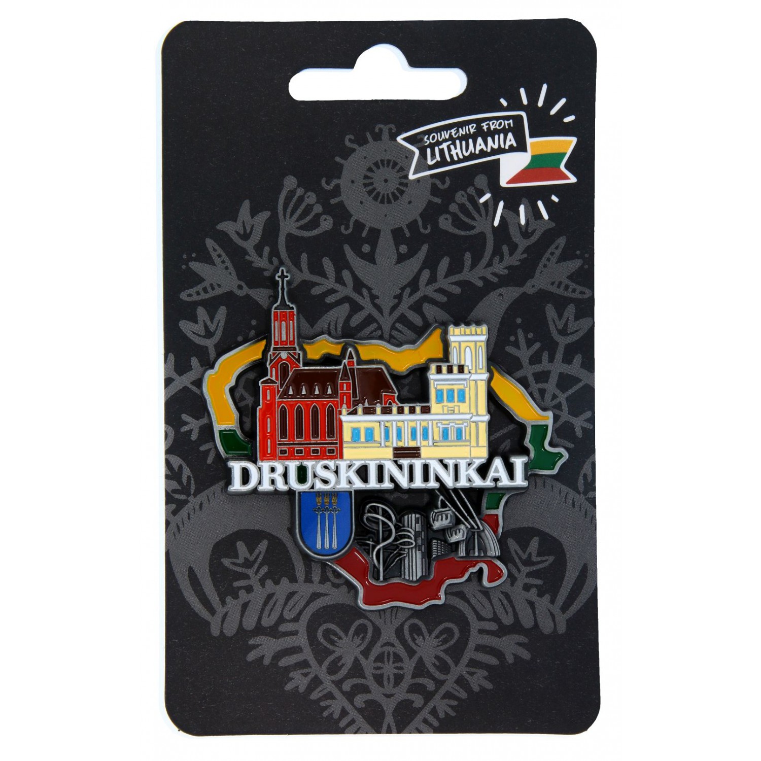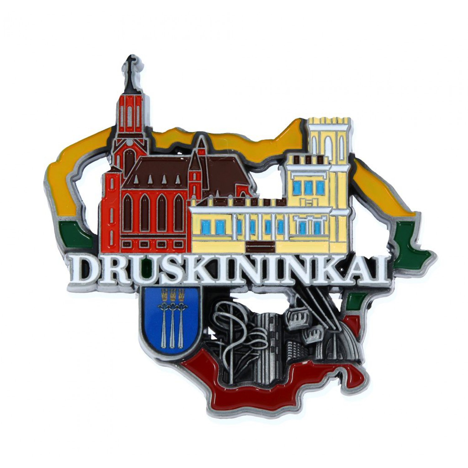 Metalinis magnetas Druskininkai Lietuvos kontūro formos – stilingas suvenyras, idealiai tinkantis kaip prisiminimas arba prekiauti suvenyrų parduotuvėse.