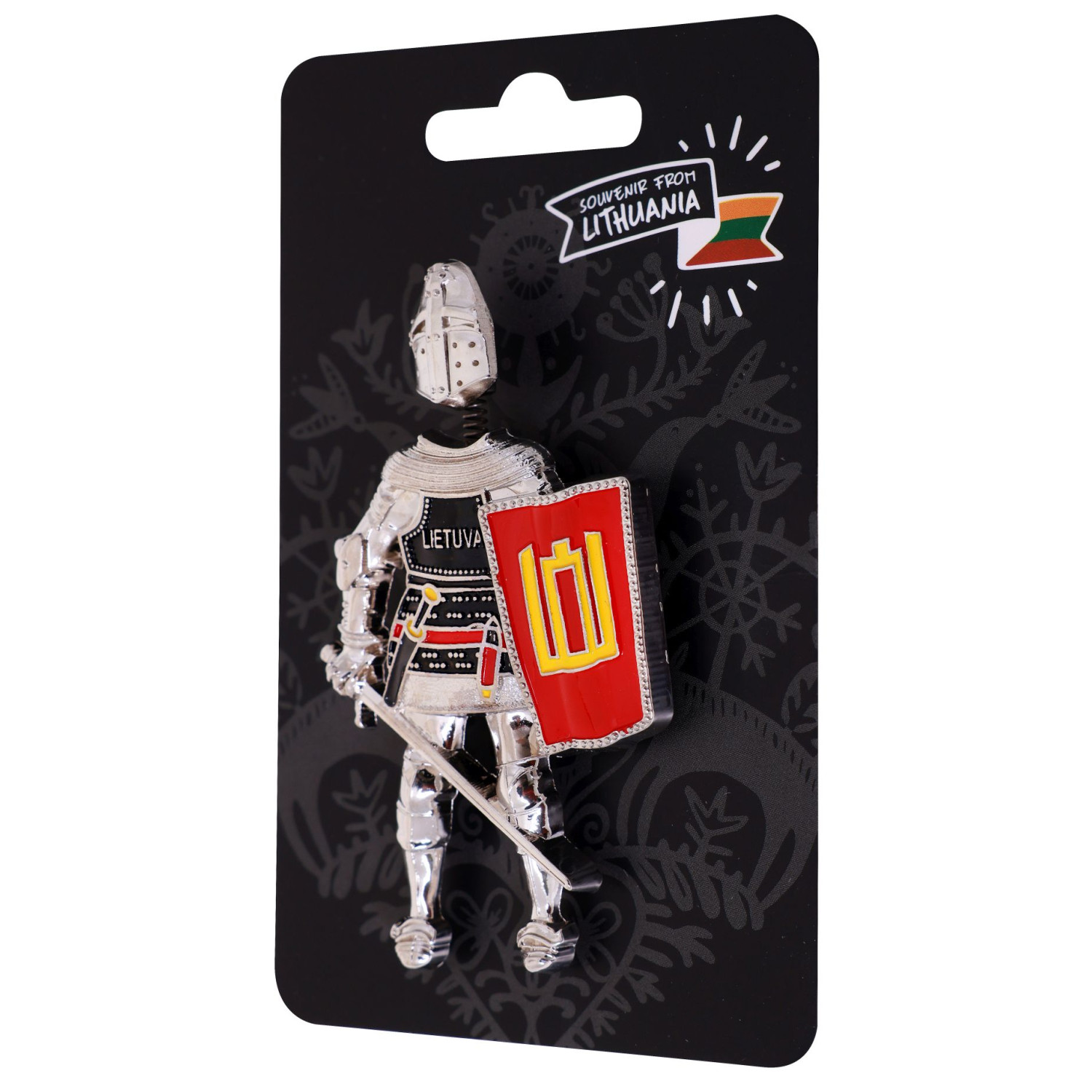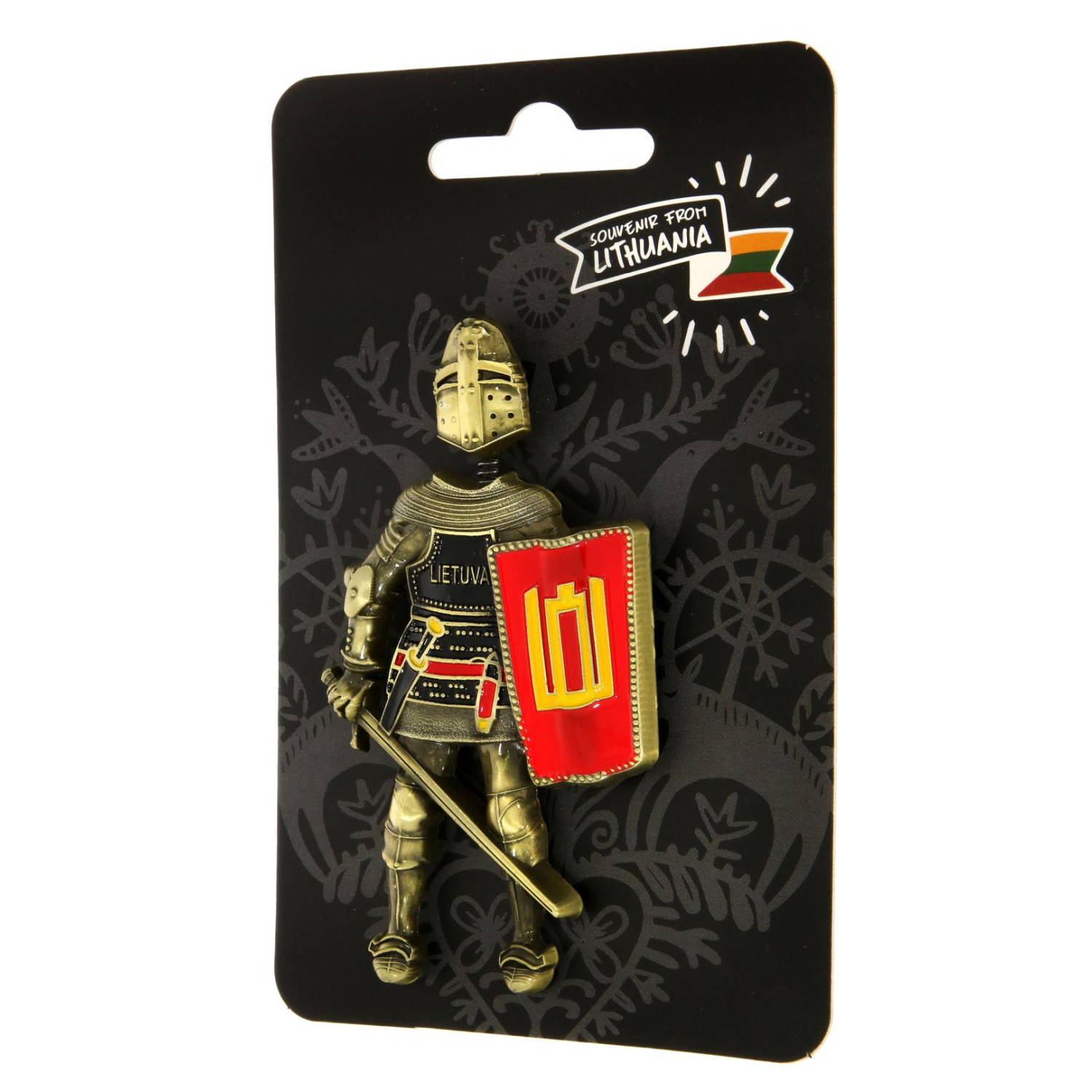 Metalinis suvenyrinis magnetas su Lietuvos riterio figūra. Riteris su judančia galva, rankoje laiko skydą su Gediminaičių stulpais, o ant šarvų – užrašas Lietuva. Išskirtinis suvenyras istorijos ir Lietuvos simbolikos mėgėjams. Galimas pasirinkimas – sidabro arba bronzos spalvos.