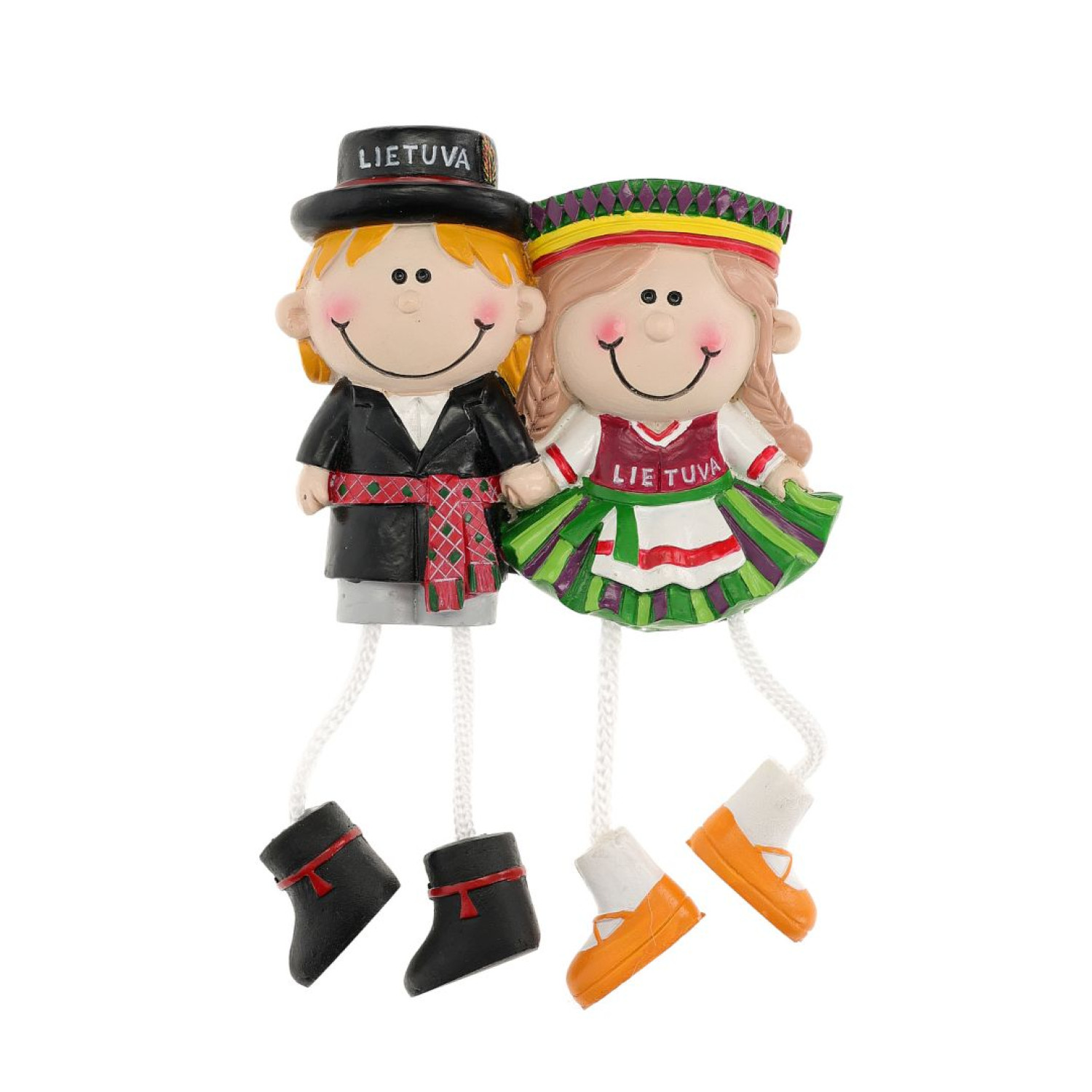 Magnetas pora lietuvių tautiniais rūbais, šokėjai su judančiomis kojomis iš virvelių. Puikus suvenyras ir dovana, simbolizuojanti Lietuvos kultūrą.