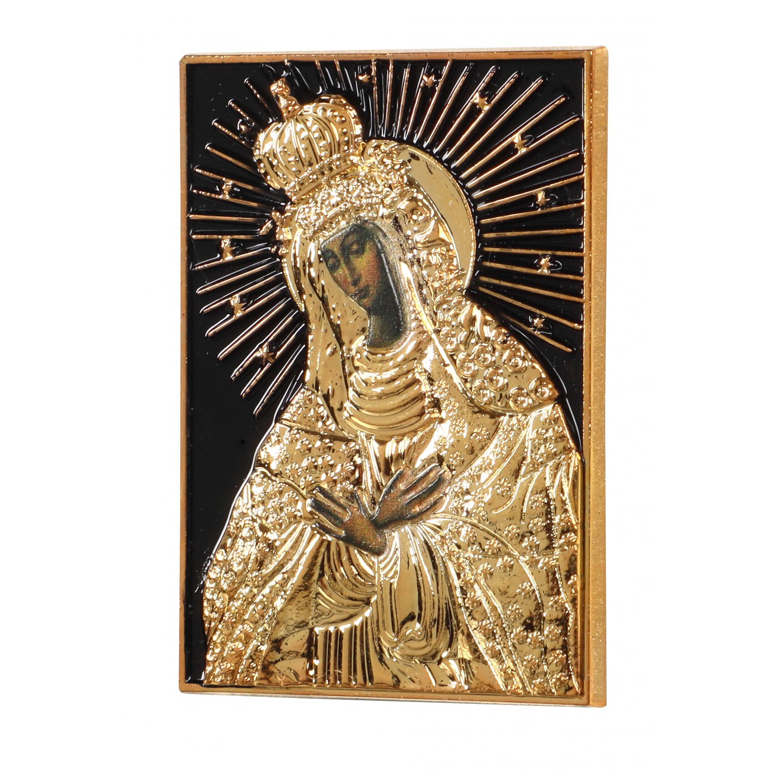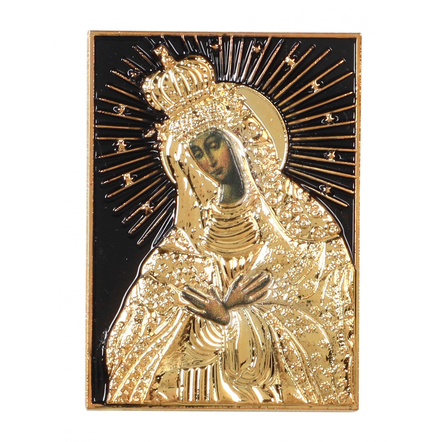 Dekoratyvus magnetas vaizduojantis Švenčiausiosios Mergelės Marijos atvaizdą. Aukso spalvos detalės suteikia prabangos pojūtį. Puikus suvenyras arba religinis simbolis, tinkantis šaldytuvui ar metalinėms paviršių dekoracijoms.