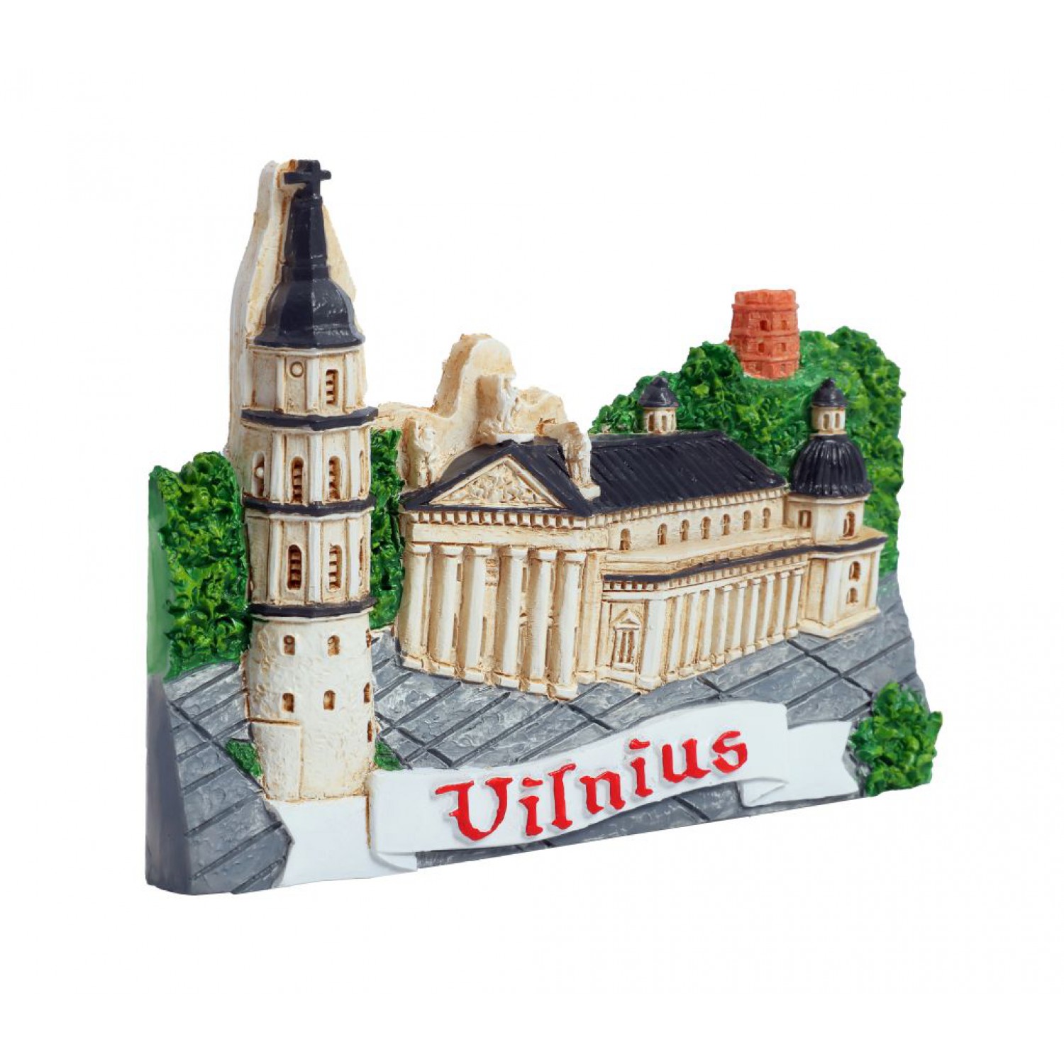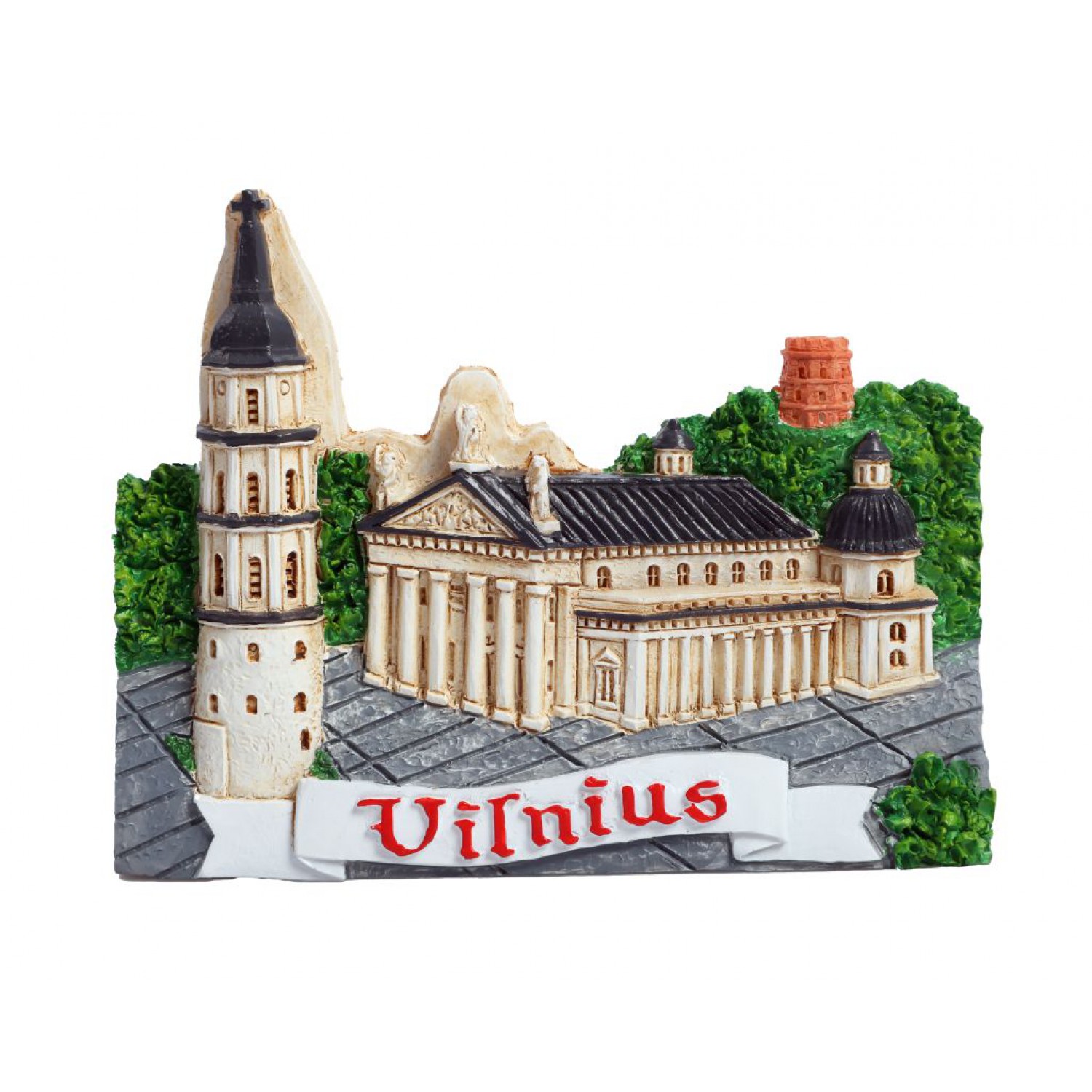 Polirezino magnetas vaizduoja Vilniaus Katedrą, varpinę ir Gedimino pilies bokštą, supamus žalumos. Detalus ir spalvingas suvenyras, puikiai reprezentuojantis Vilniaus miesto simbolius bei kultūrą.