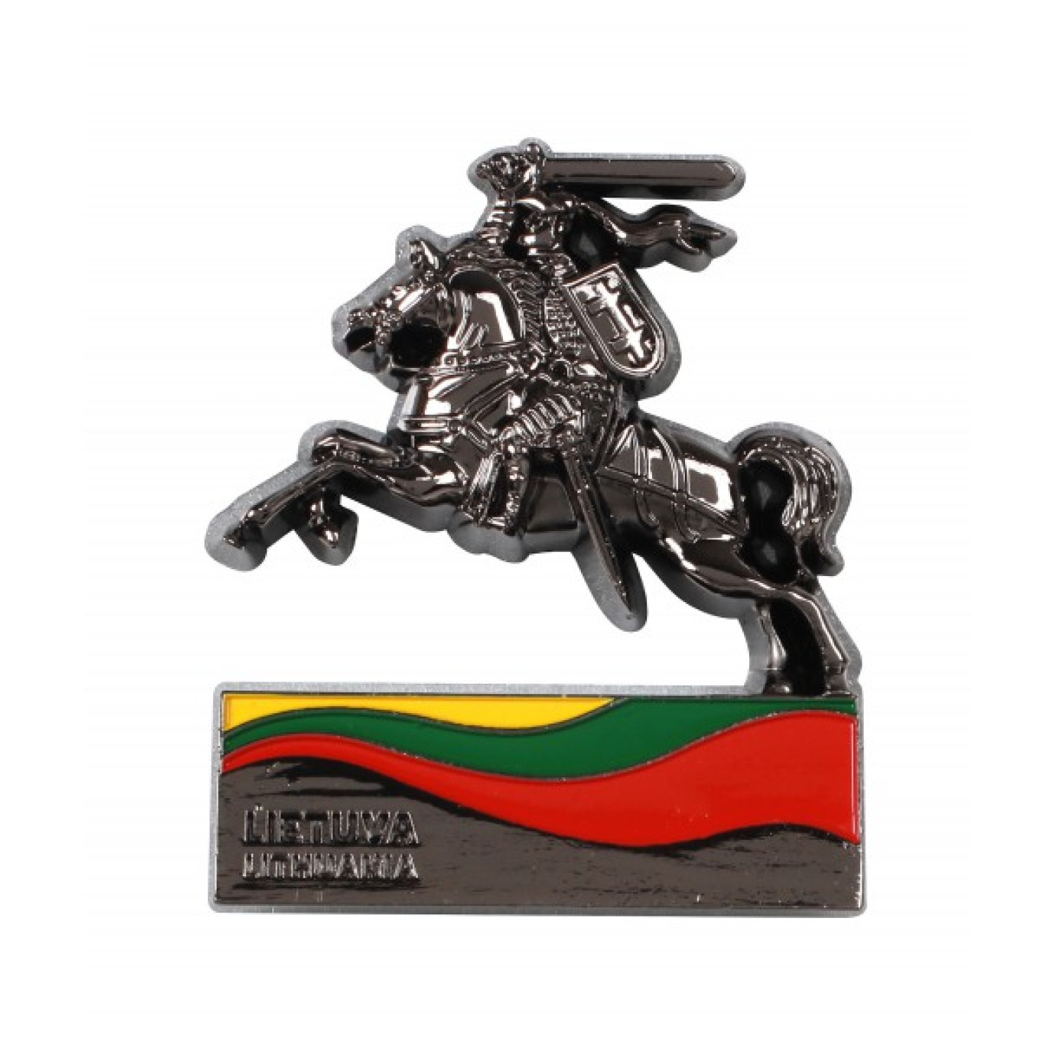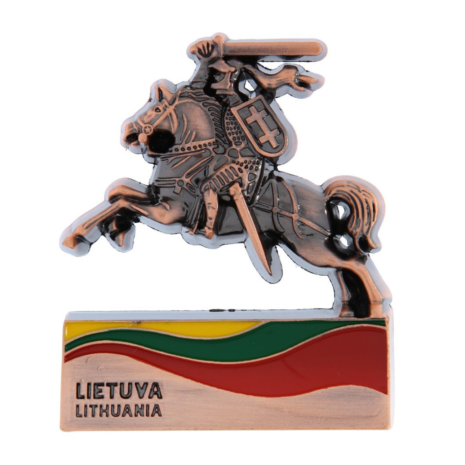 Metalinis magnetas su Lietuvos herbo simboliu – Vyčiu. Papuoštas trispalvės akcentais ir užrašais Lietuva bei Lithuania. Simbolizuoja Lietuvos valstybingumą, istoriją ir tautinį identitetą. Galima rinktis iš vario, aukso arba juodos spalvos variantų.