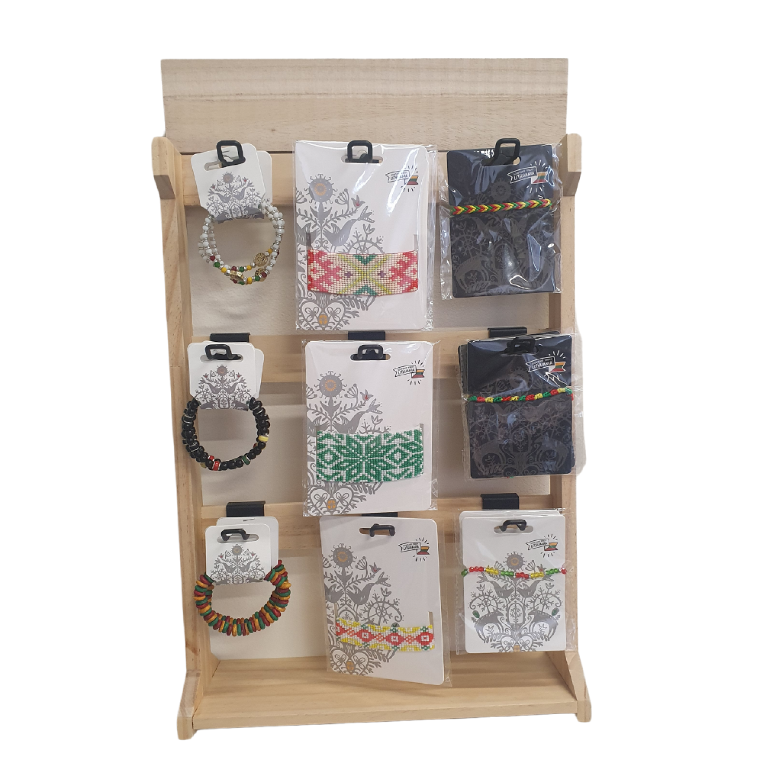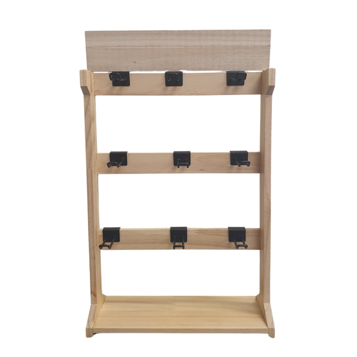 Medinis stendas skirtas apyrankėms ar kitoms smulkioms prekėms eksponuoti. Turi devynis patogiai išdėstytus kabliukus