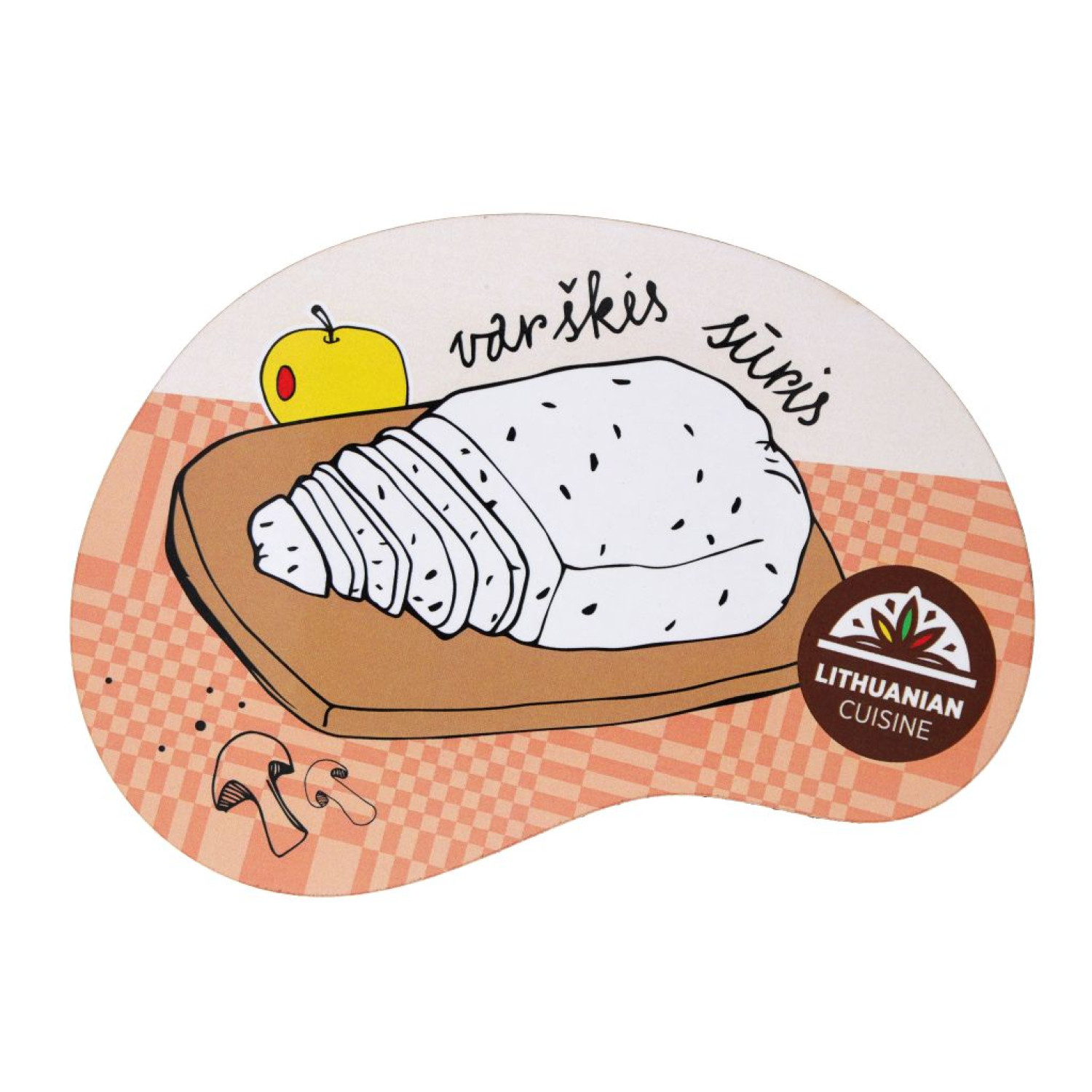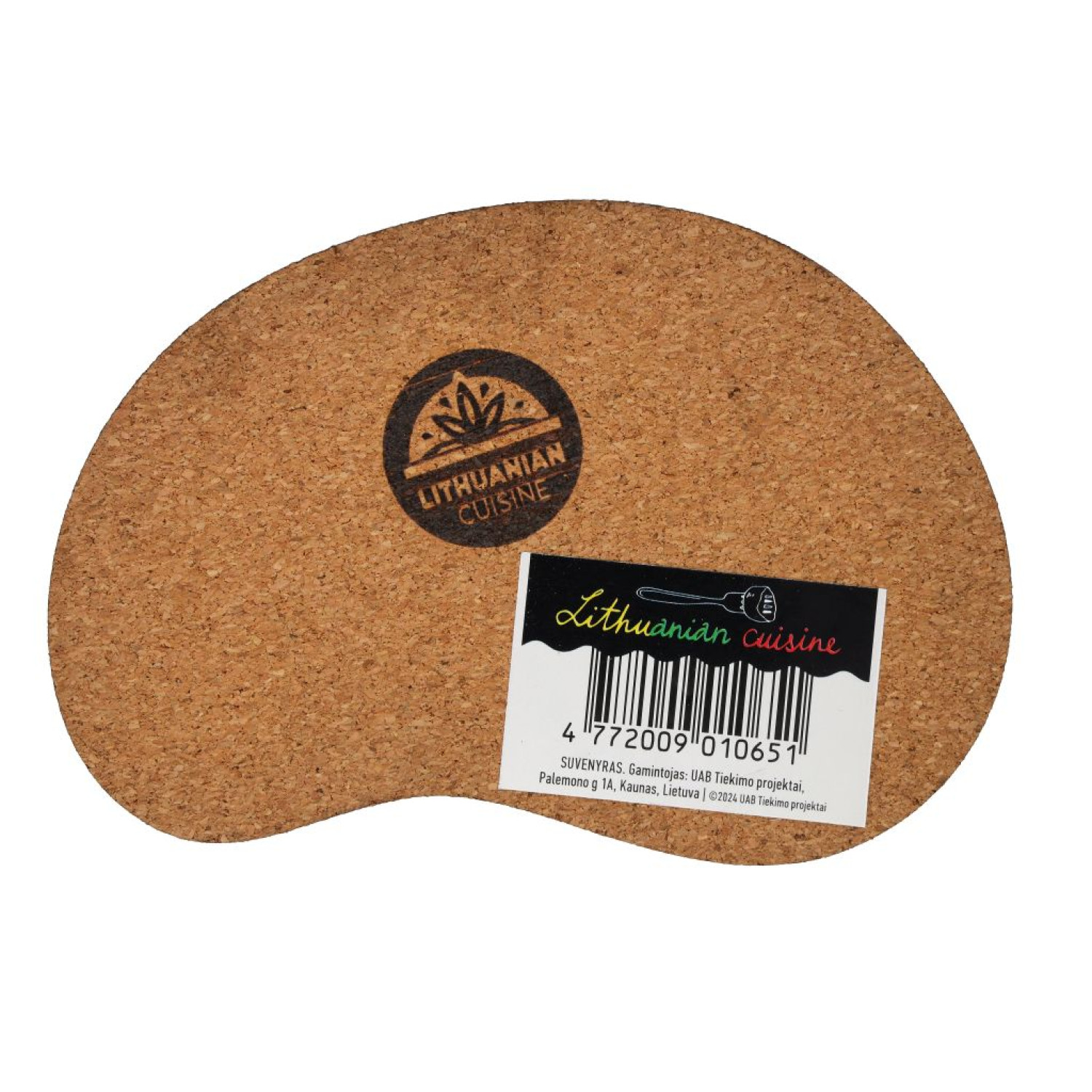 Padėkliukas puodeliui iš kamštinės medžiagos su tradicinio lietuviško patiekalo – varškės sūrio – dekoru. Praktiškas ir stilingas aksesuaras, tinkantis lietuviškos virtuvės gerbėjams.