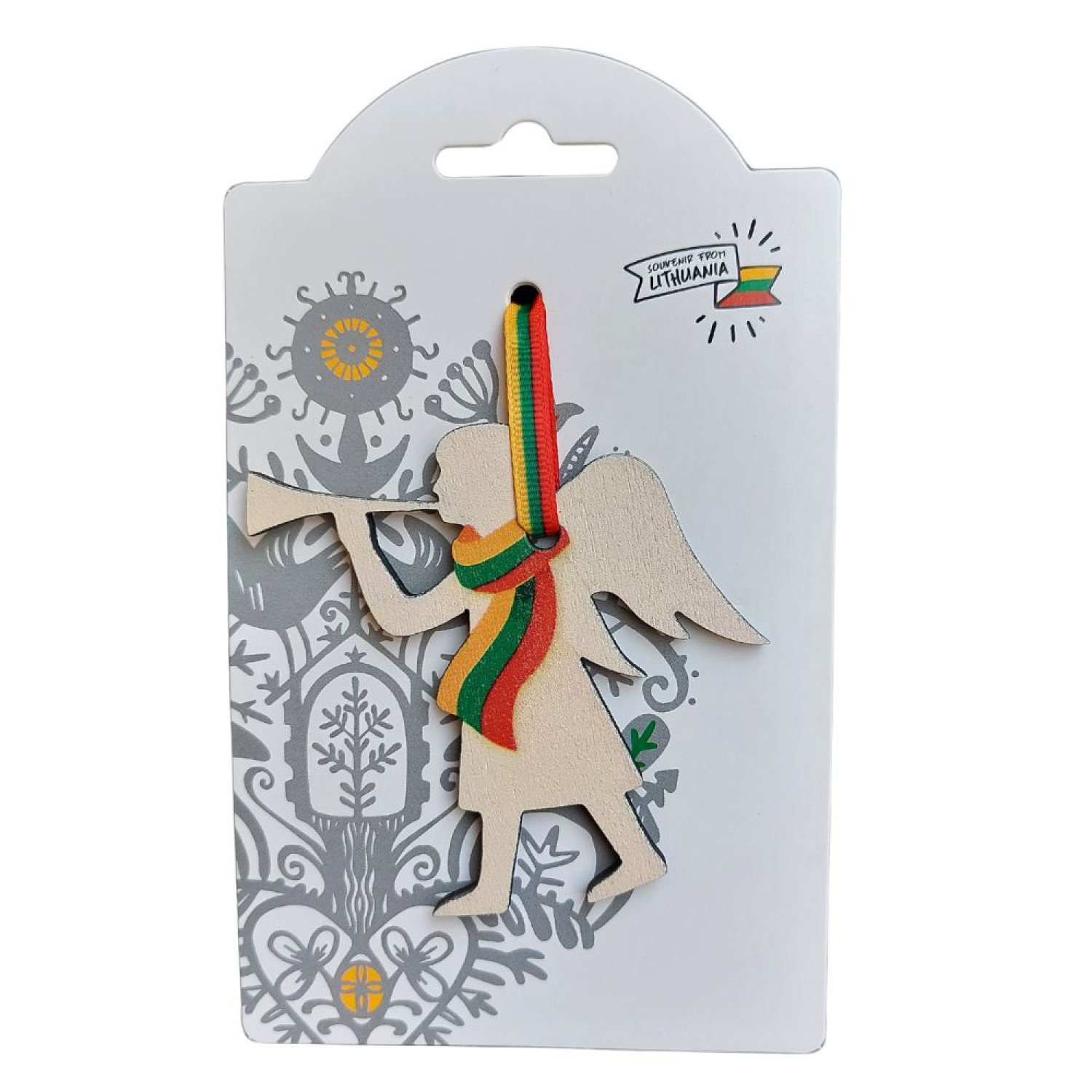 Pakabinama dekoracija Angelas su trispalviu šaliku – subtili ir prasminga detalė, simbolizuojanti taiką, globą ir meilę Lietuvai. Šis medinis angelas su Lietuvos trispalve juostele tinka kaip lietuviškas suvenyras, kalėdinė dekoracija ar dovana, taip pat puošti namus ar darbo erdvę.