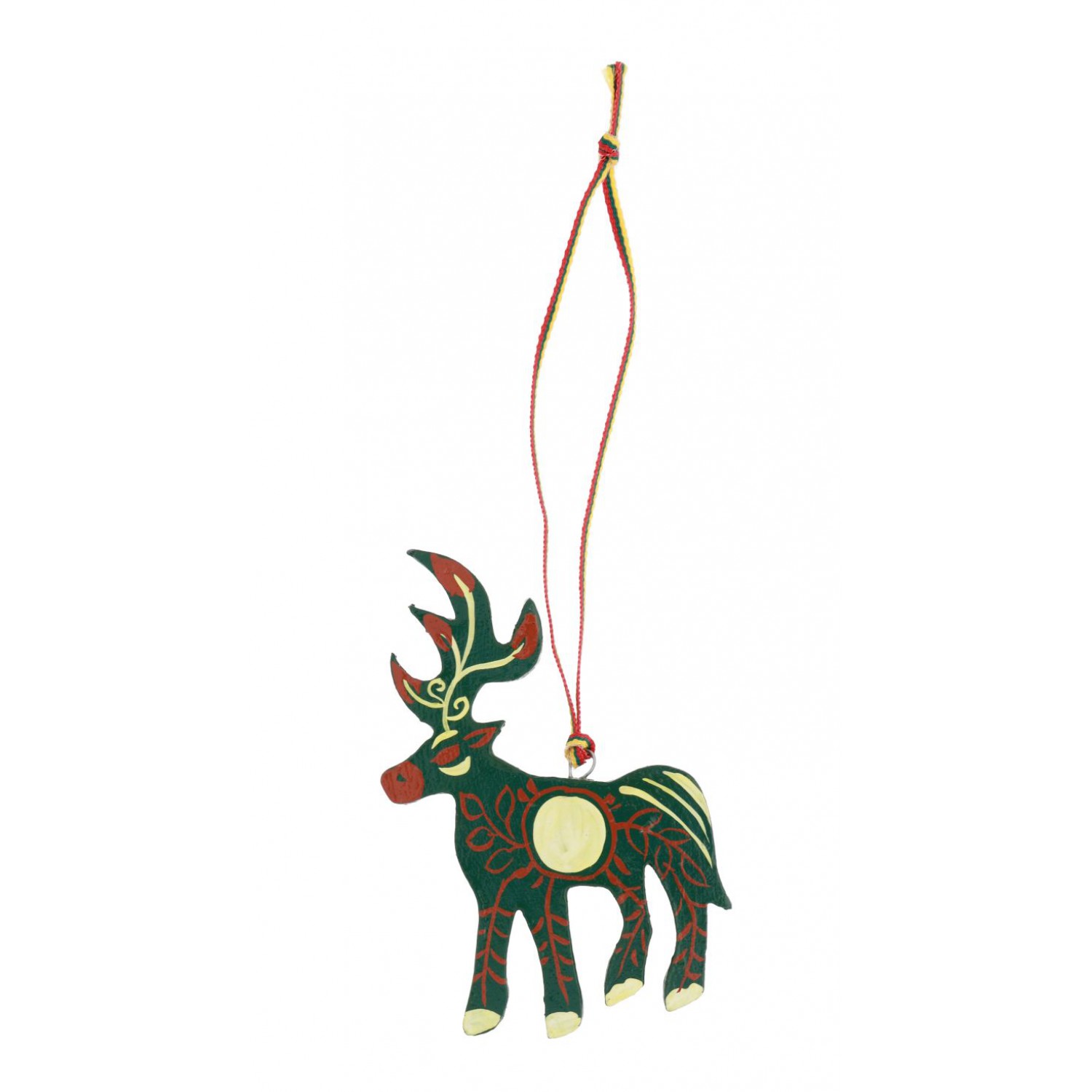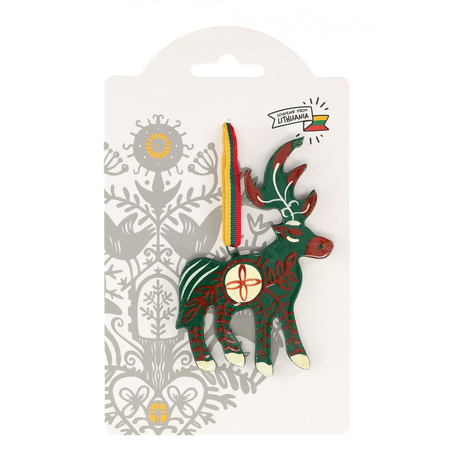 Pakabinama dekoracija elnias – žalias elnias dekoruotas Lietuvos liaudies ornamentais ir trispalvės juostele. Tai išskirtinis tautinis akcentas, tinkantis kaip suvenyras, šventinė puošmena ar patriotiškas dekoro elementas namams.