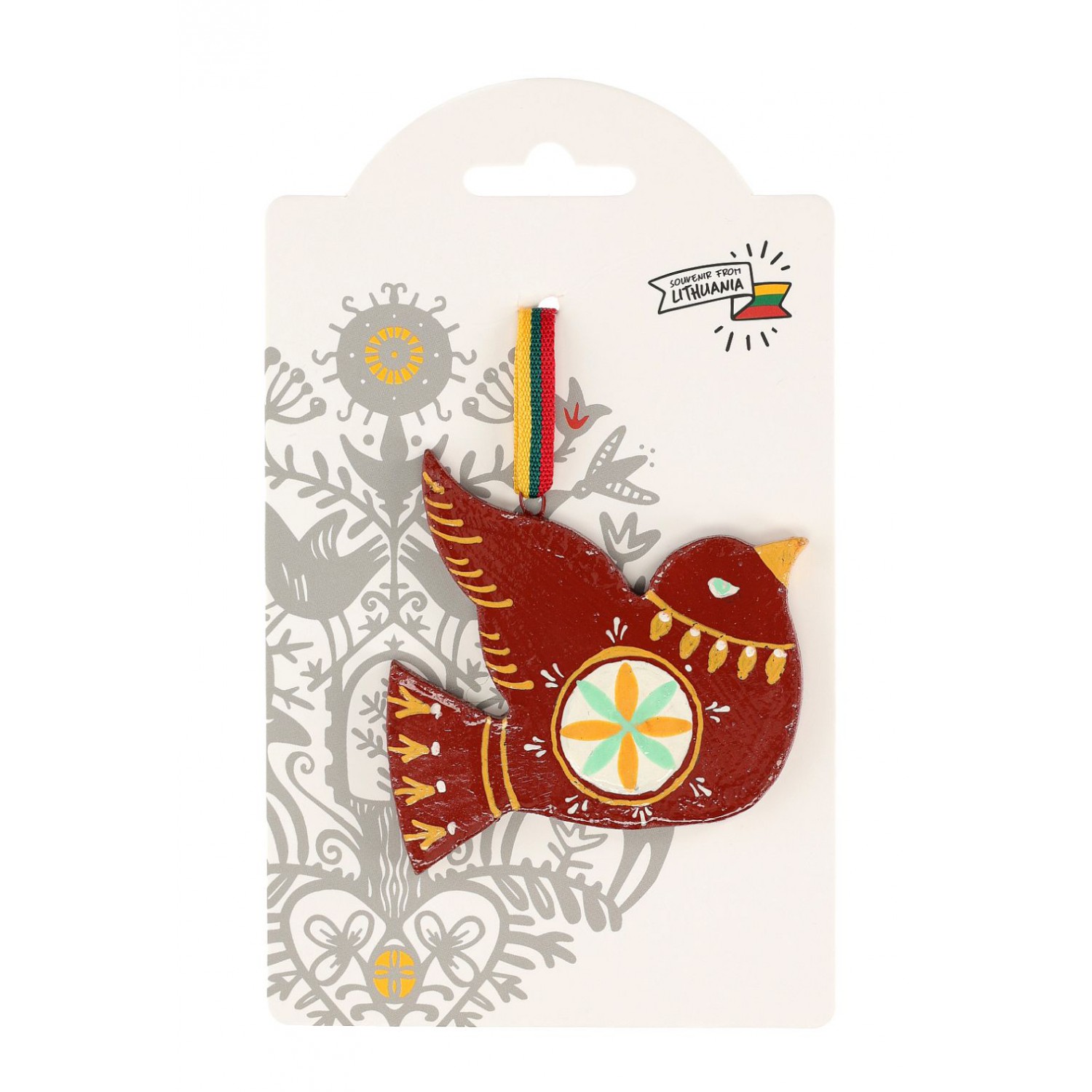 Pakabinama dekoracija rausvas paukštelis – dekoruotas lietuvių liaudies ornamentais. Ši tautinė dekoracija puikiai tinka kaip suvenyras ar jauki interjero detalė.