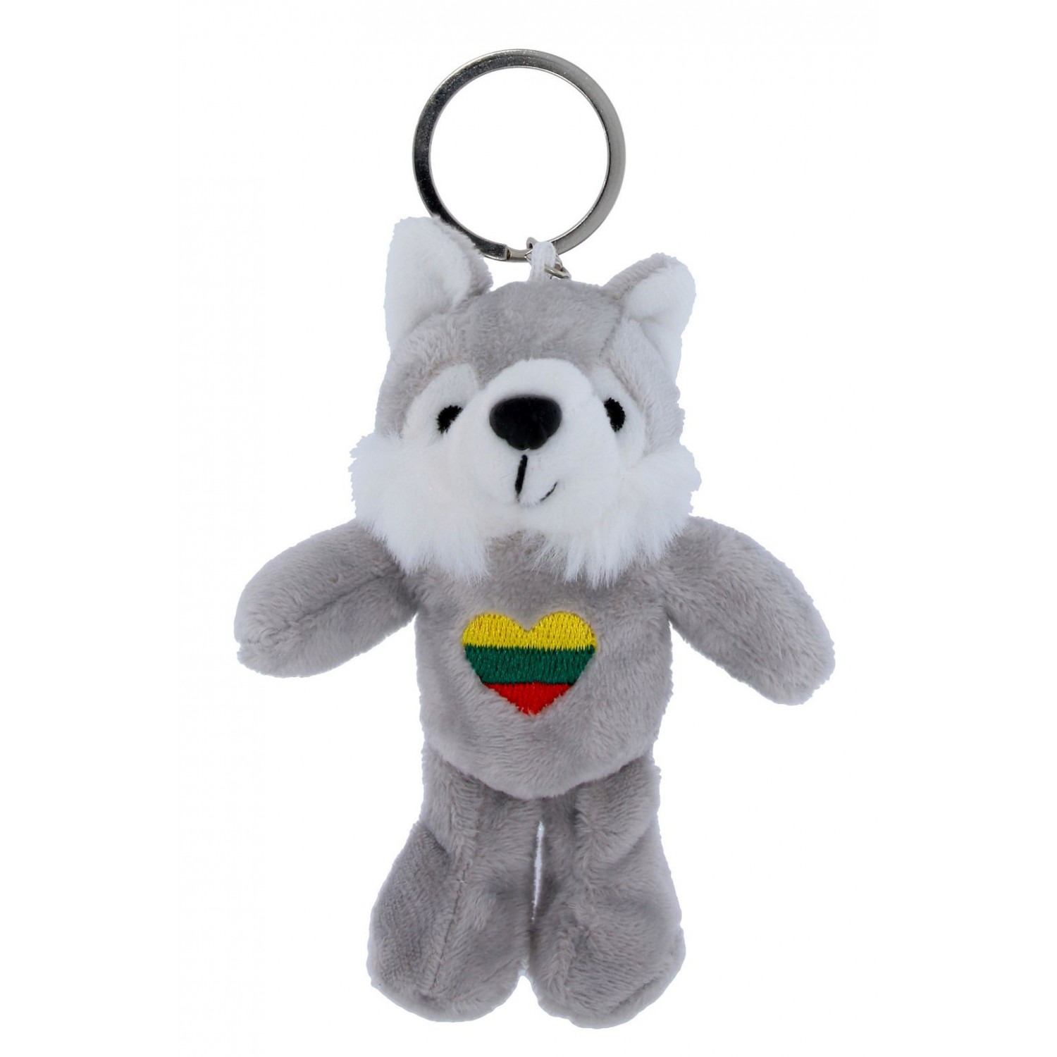 Mielas minkštas pliušinis vilkas – raktų pakabukas su išsiuvinėta Lietuvos trispalve širdelės formos emblema. Tinka kabinti ant kuprinės, raktų ar kitų daiktų. Puikus suvenyras iš Lietuvos.