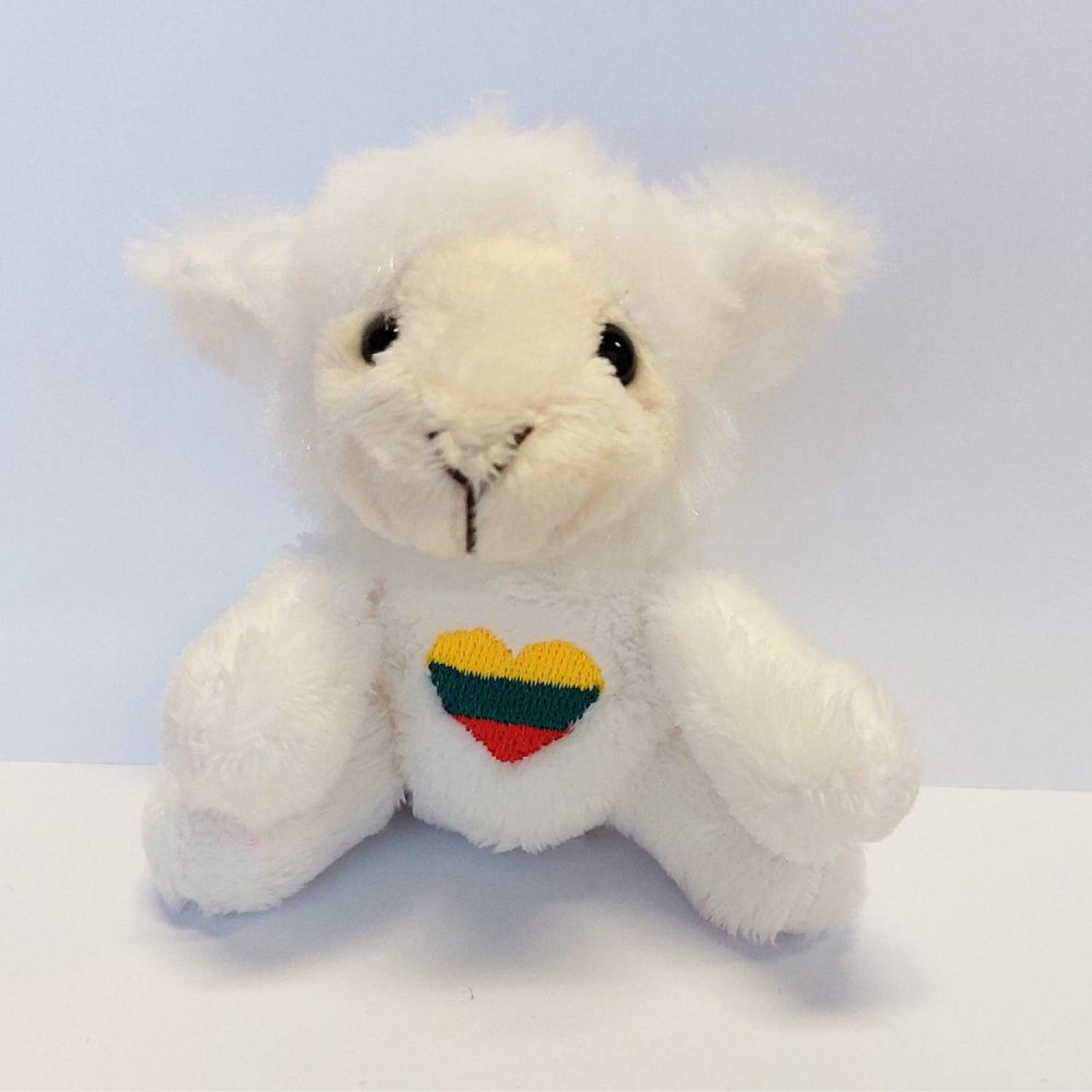 Minkštas ir mielas avytės formos raktų pakabukas su širdelės aplikacija, papuošta Lietuvos vėliavos spalvomis. Puikus suvenyras ar dovana lietuviškumą mylintiems.