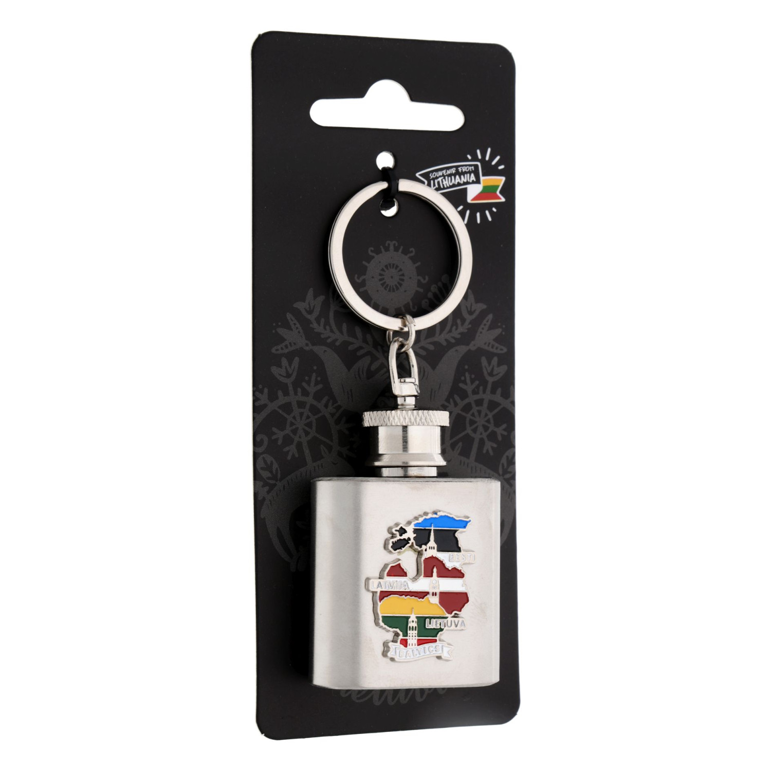 Raktų pakabukas gertuvės formos su Baltijos šalių kontūru