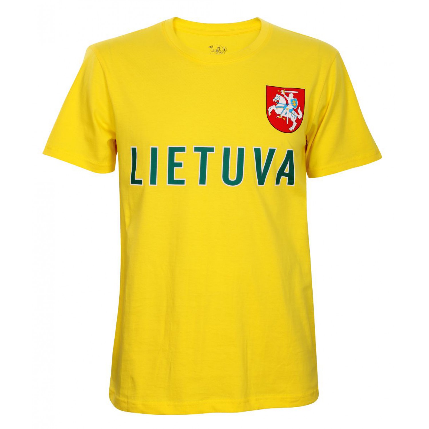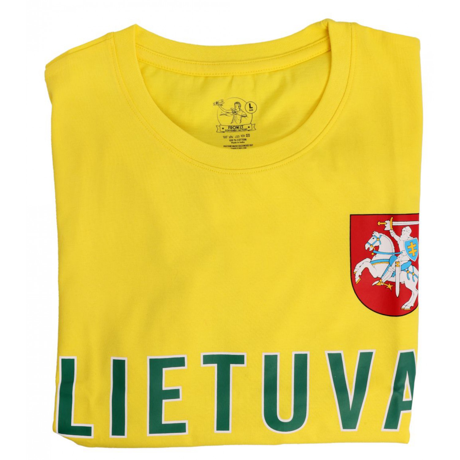 Geltoni sirgalių marškinėliai su užrašu Lietuva ir herbu