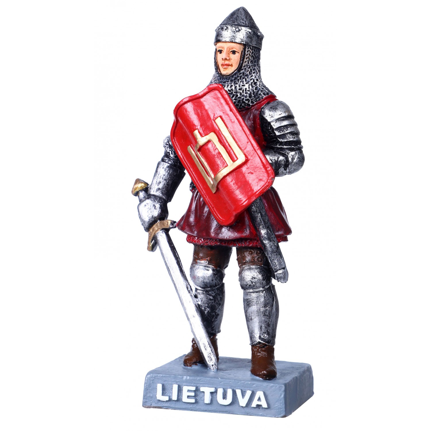 Spalvota suvenyrinė miniatiūra vaizduoja viduramžių Lietuvos karį su šarvais, kalaviju ir raudonu skydu su auksiniu simboliu. Pagaminta iš patvarios polirezino keramikos. Figūrėlė stovi ant pagrindo su užrašu Lietuva.