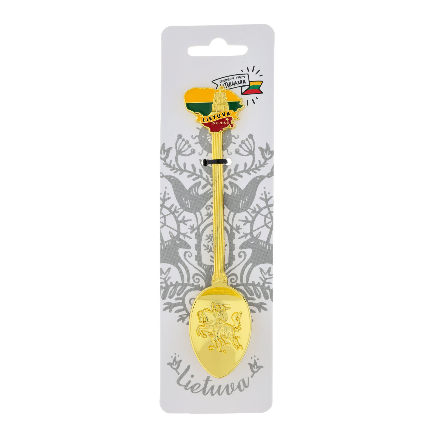 Dekoratyvinis suvenyrinis šaukštelis auksinės spalvos paviršiumi. Viršutinėje dalyje pavaizduotas Lietuvos kontūras su nacionaline trispalve ir Vilniaus simboliu. Šaukštelyje atspaustas šiek tiek iškilus Vytis – vienas iš svarbiausių Lietuvos heraldinių simbolių. Skirtas tik dekoratyviniam naudojimui, netinkamas sąlyčiui su maistu.