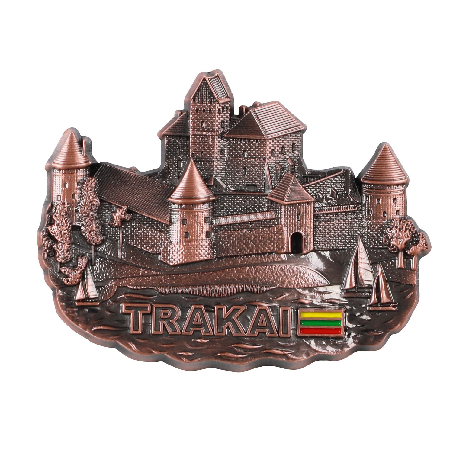 Magnetas, vaizduojantis garsiąją Trakų pilį. Detalus ir dekoratyvus suvenyras, puikiai tinkantis priminti apie vieną žymiausių Lietuvos istorinių paminklų.