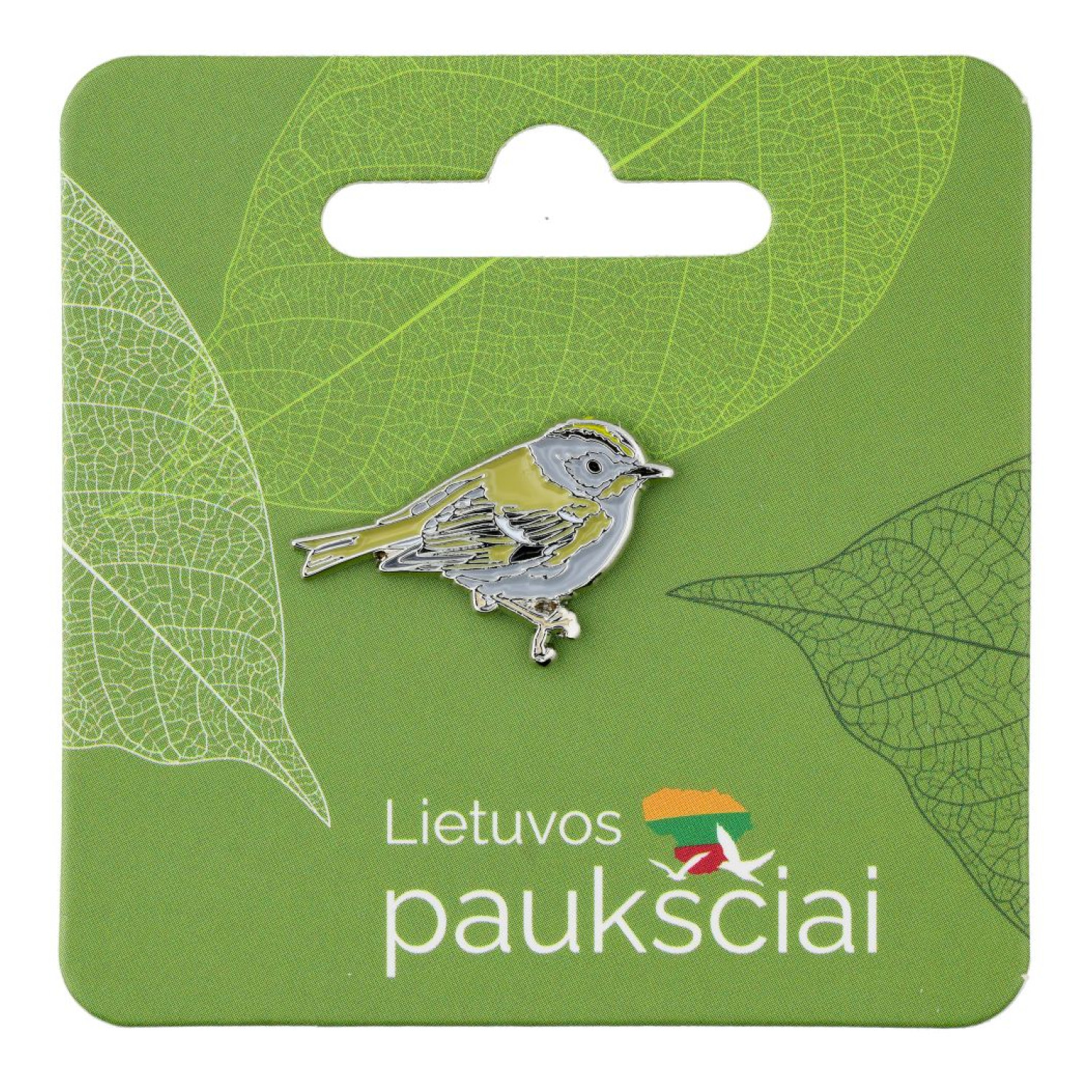 Įsegamas ženkliukas Paprastasis nykštukas (Regulus regulus).