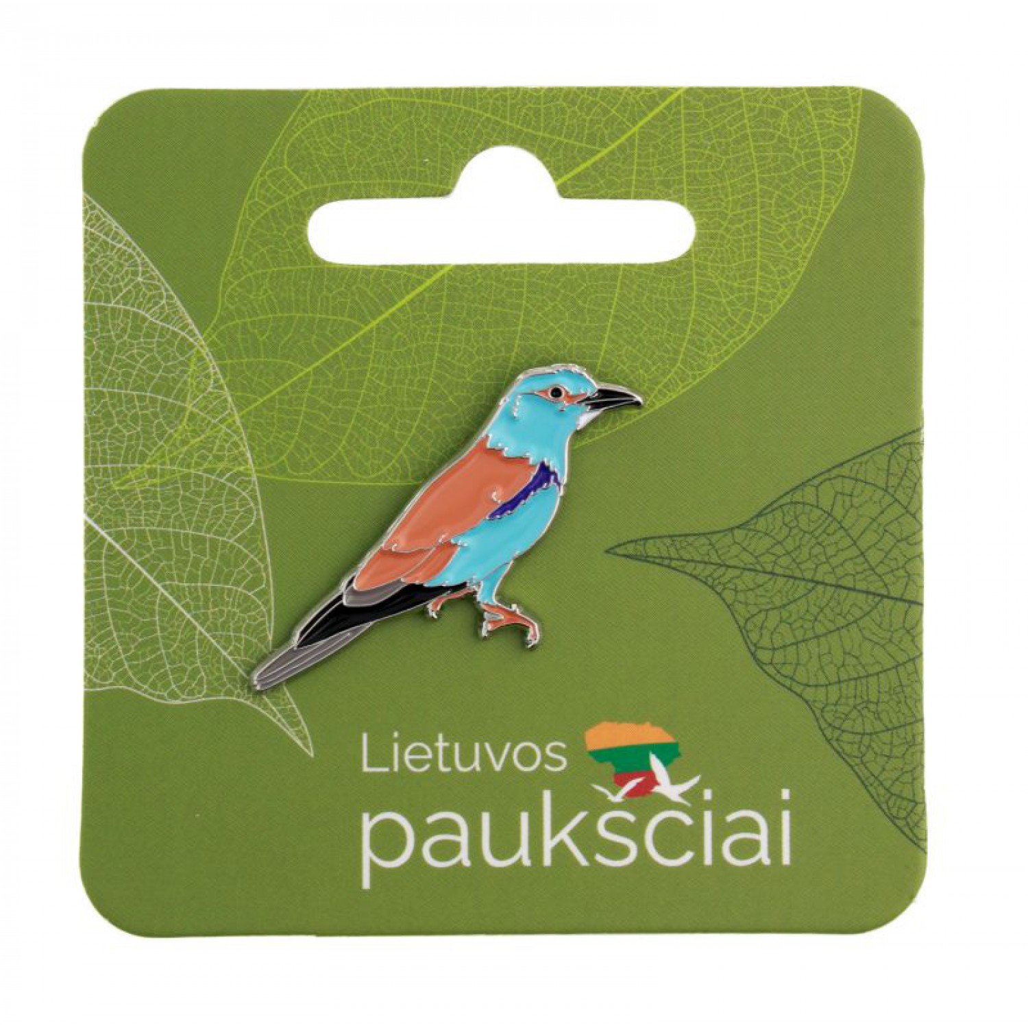 Įsegamas ženkliukas Europinis žalvarnis (lot. Coracias garrulus).