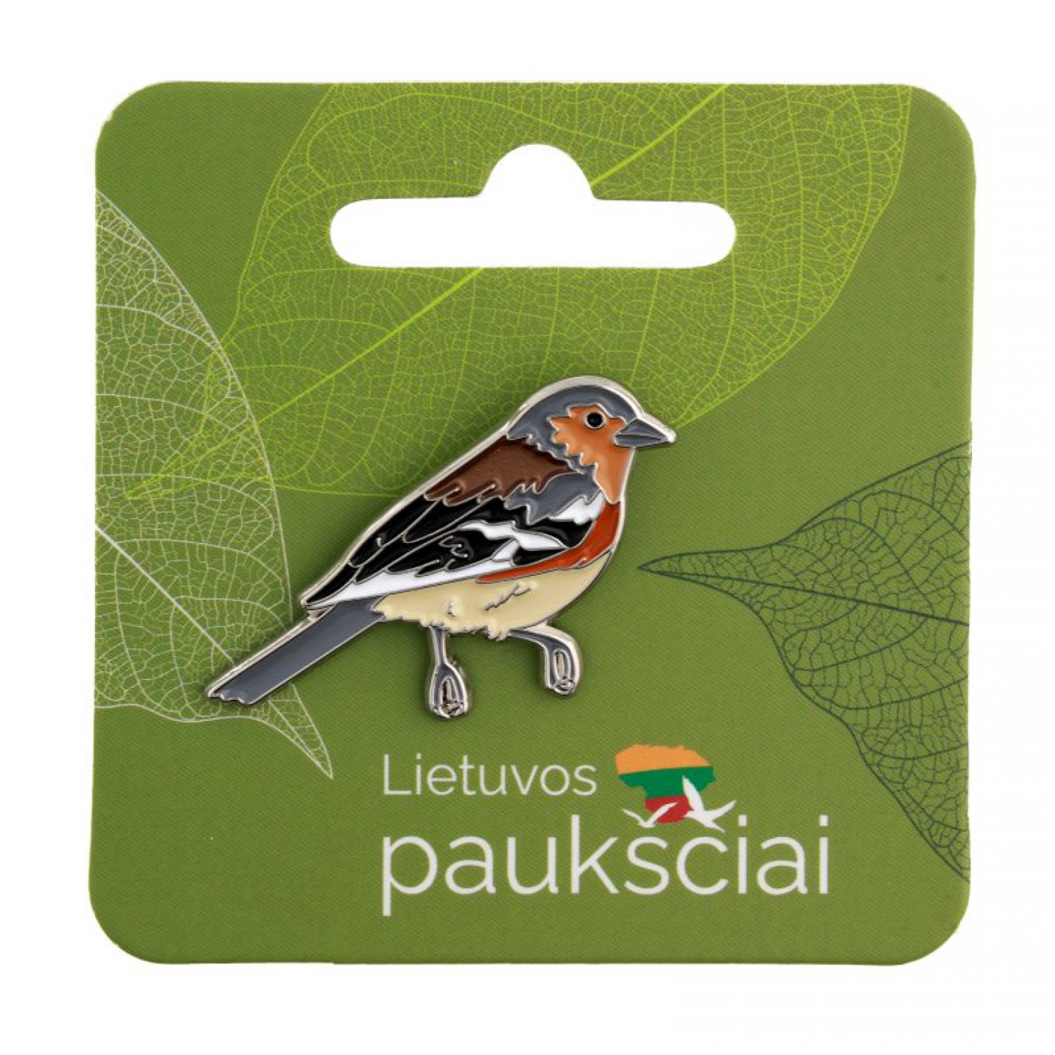 Įsegamas ženkliukas kikilis (lot. Fringilla coelebs).