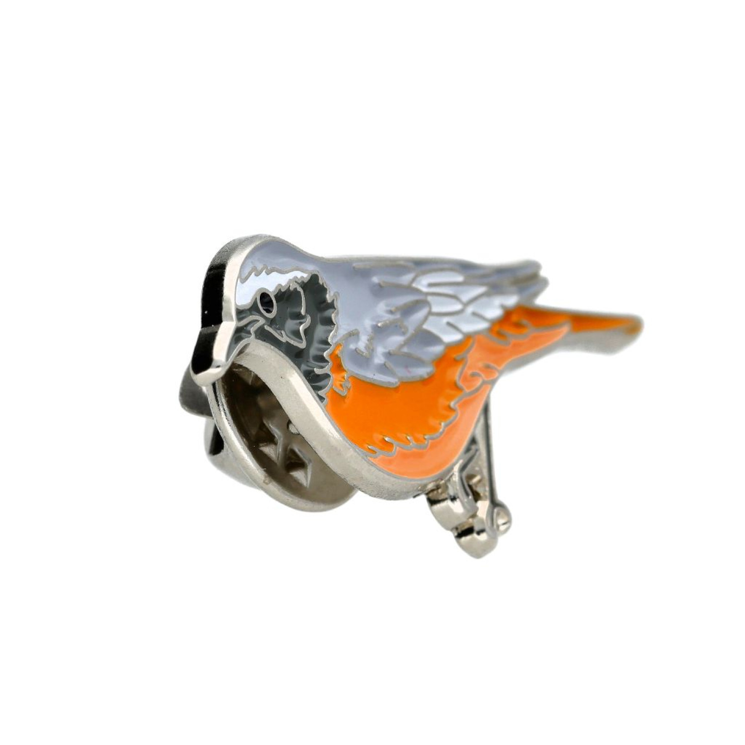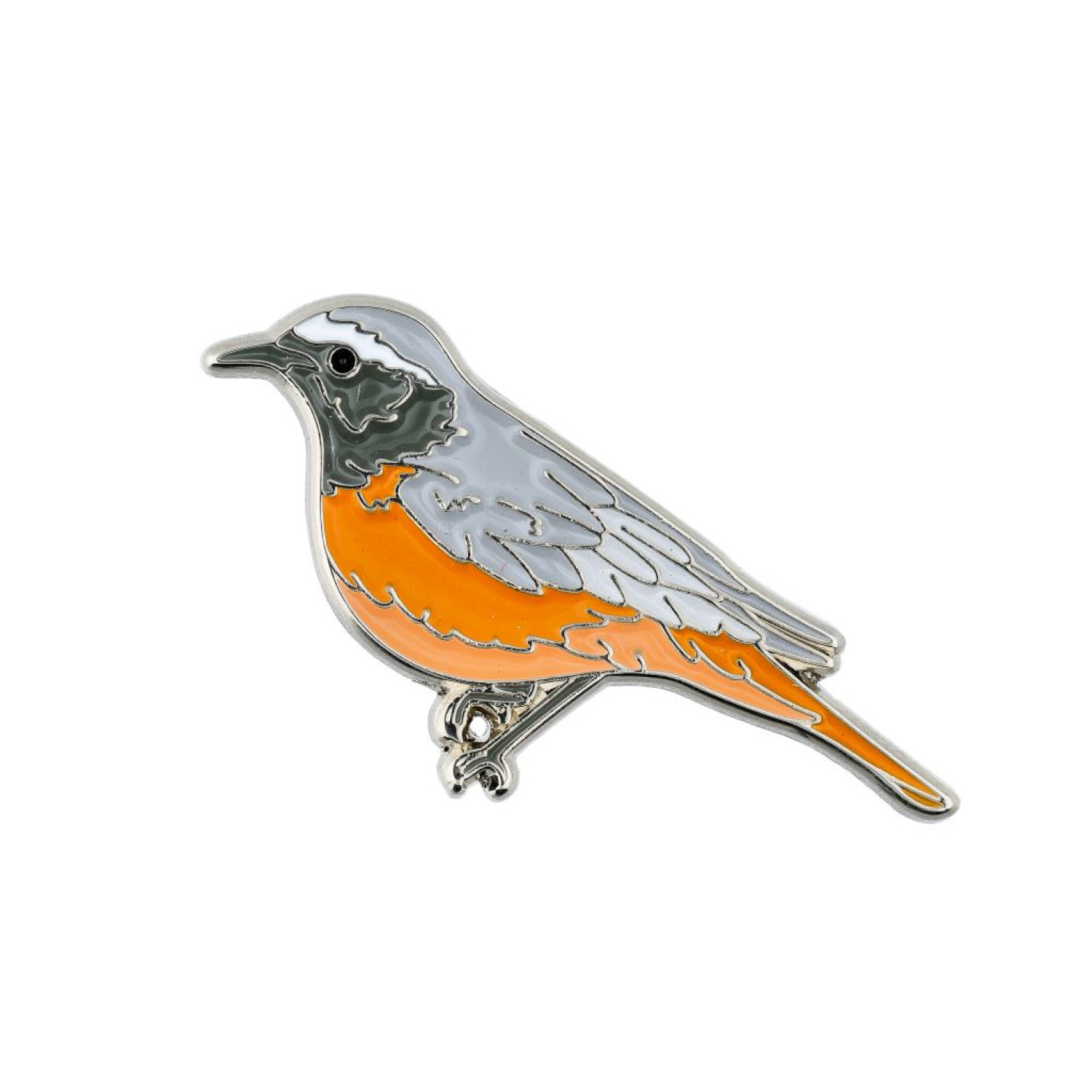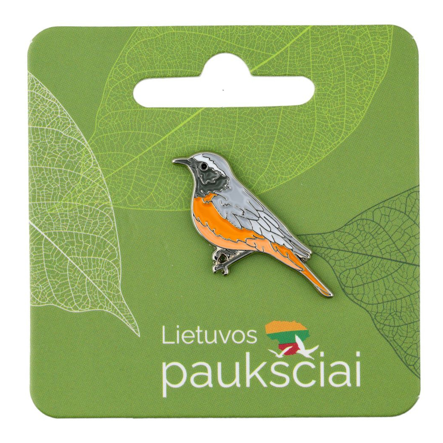 Įsegamas ženkliukas paprastoji raudonuodegė (lot. Phoenicurus phoenicurus).