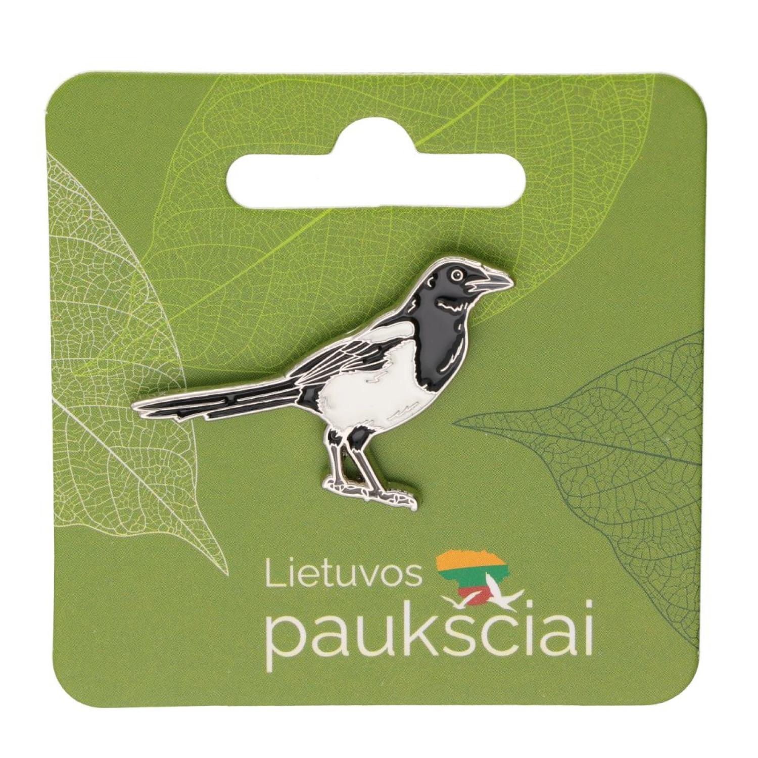 Įsegamas ženkliukas Paprastoji šarka (lot. Pica pica).